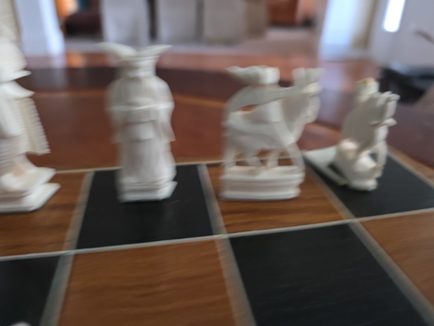 Vintage Hand Carved Asian Chinese Chess Set W/Wooden Folding Chess Board Case