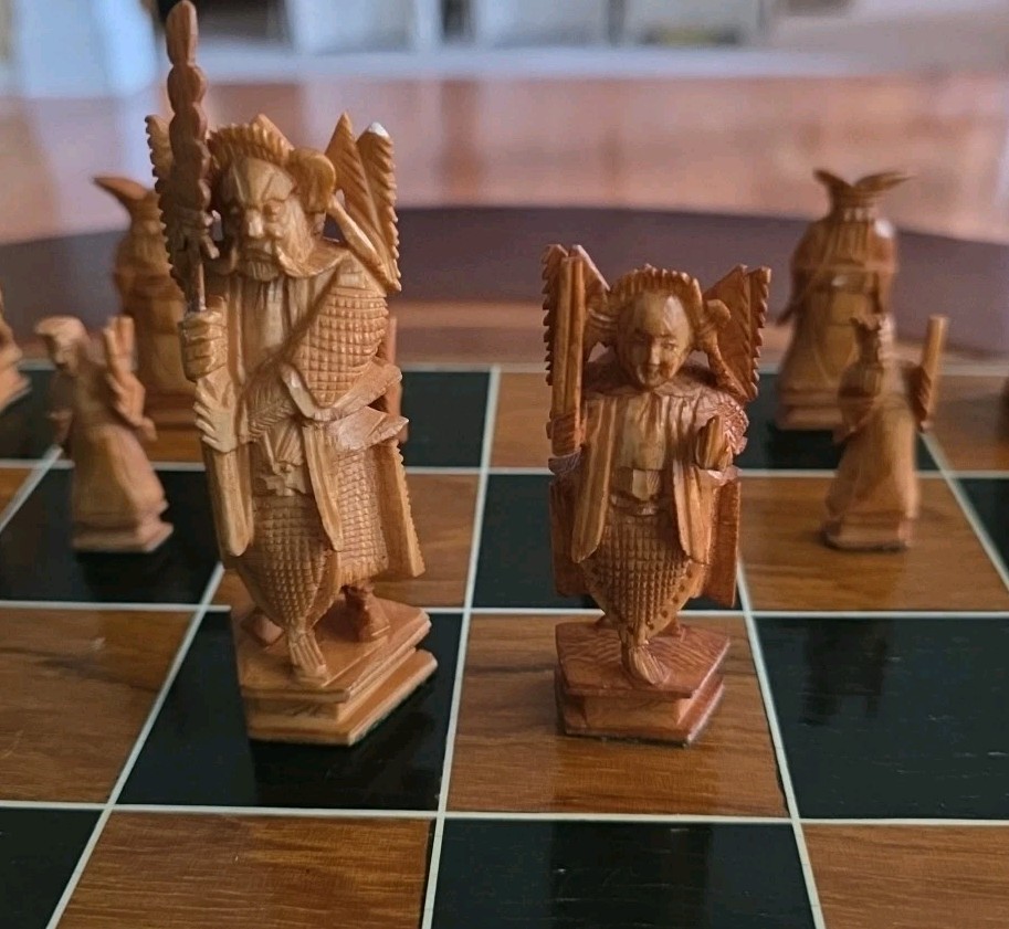 Vintage Hand Carved Asian Chinese Chess Set and 50 similar items
