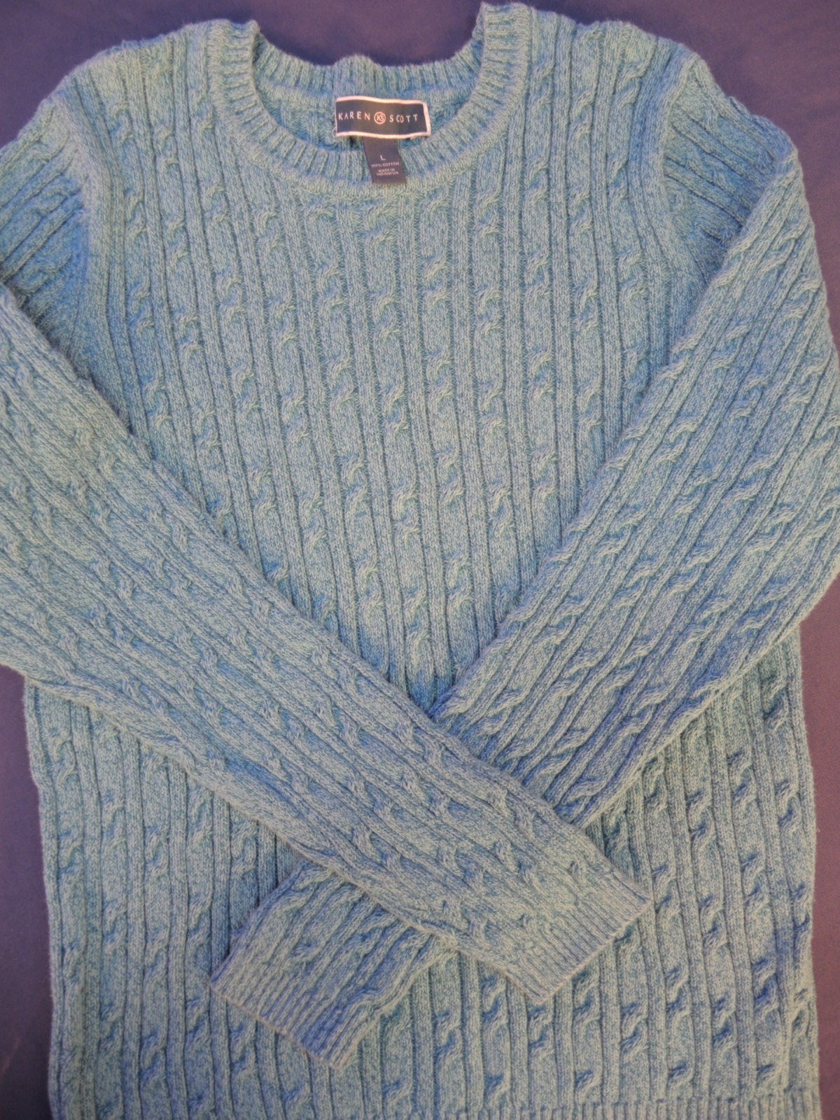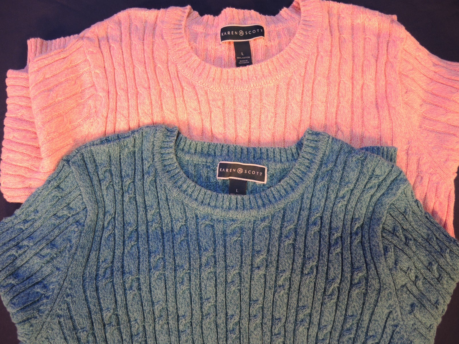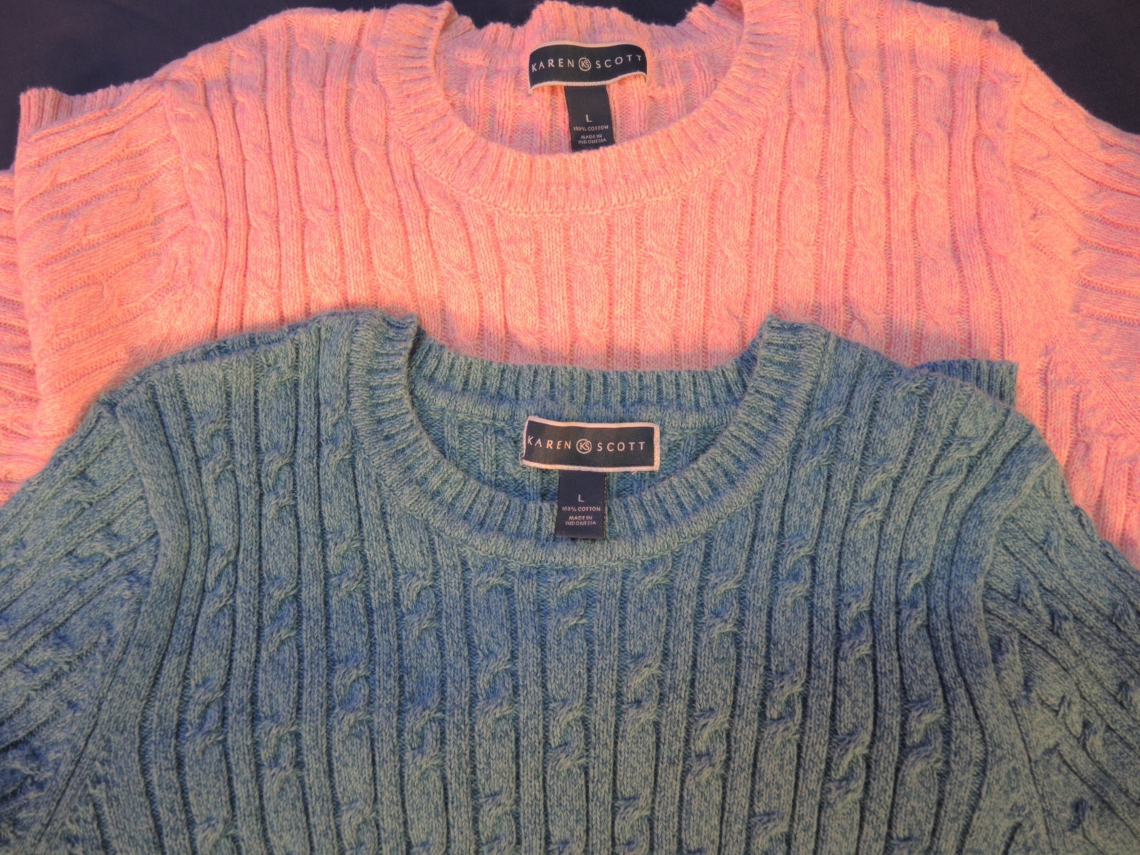 Lot of 2 KAREN SCOTT WOMEN'S SWEATERS 100% Cotton Beautiful Solid Aquamarine and Light Pink Excellent+ Pre-Owned Condition