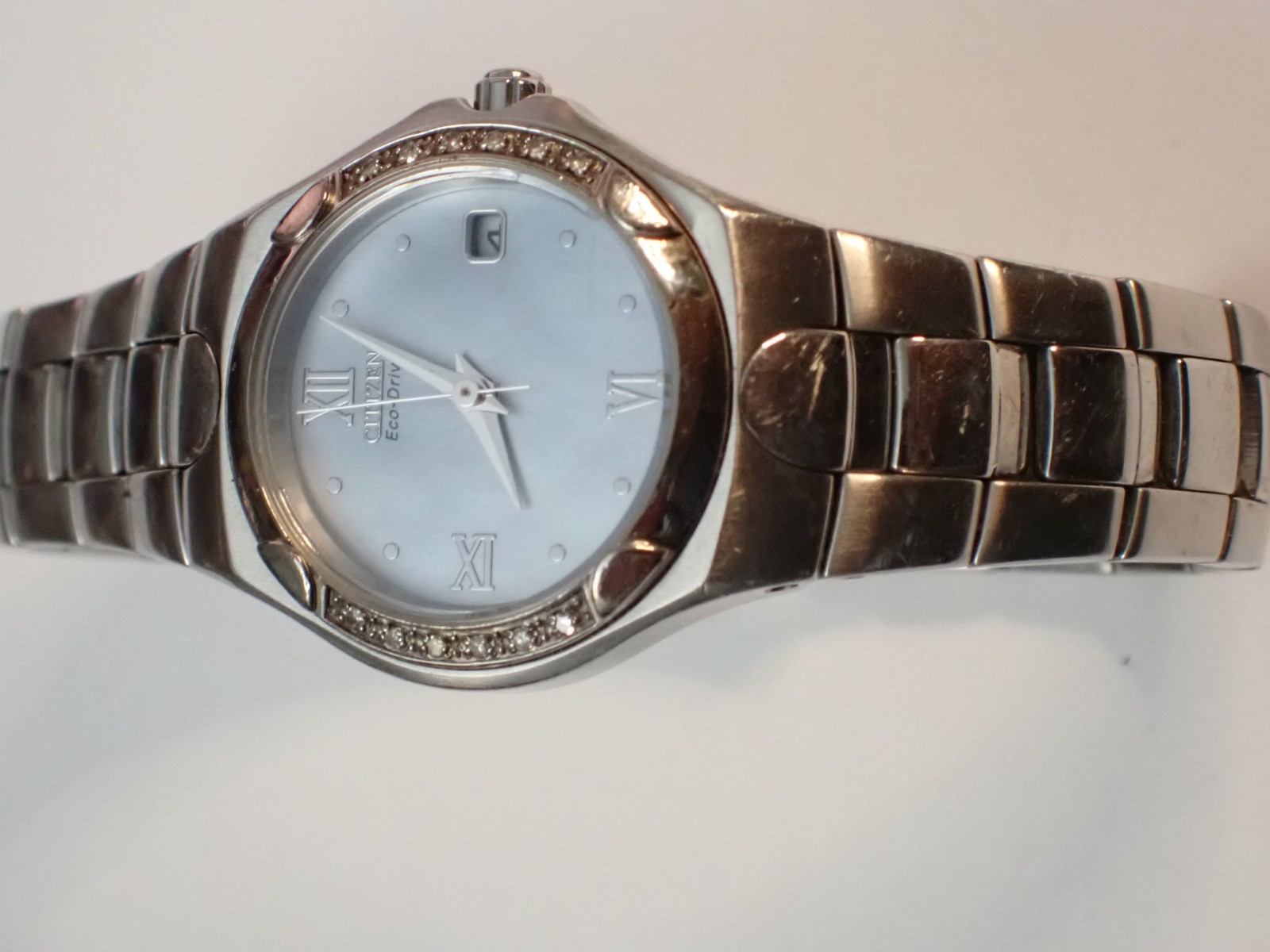 CITIZEN ECO-DRIVE E010-H29859-HST Diamonds Silver Date Women's Wristwatch