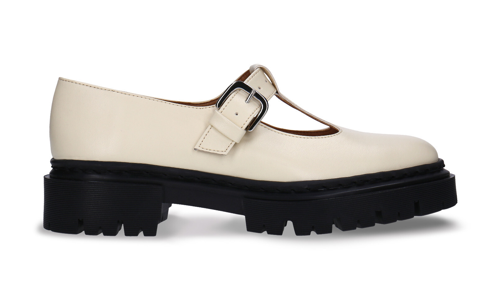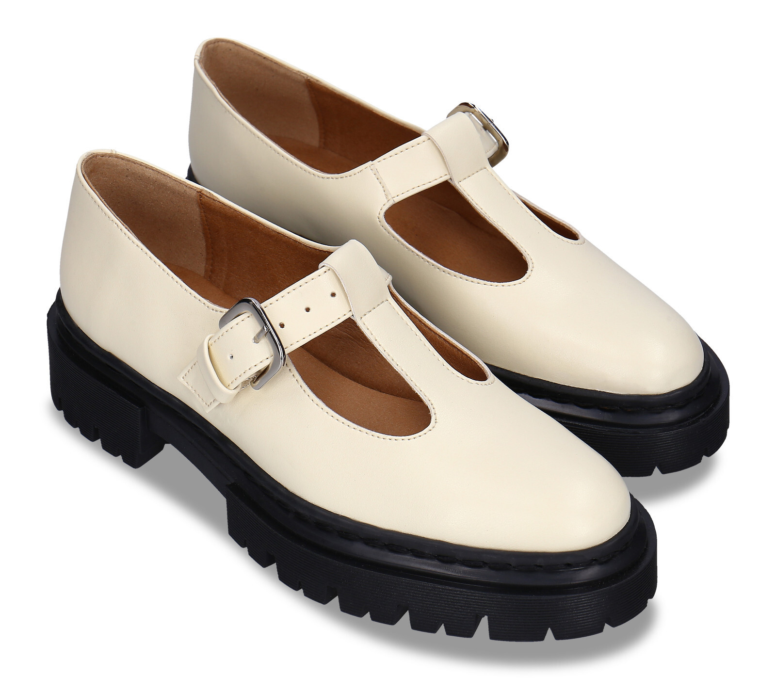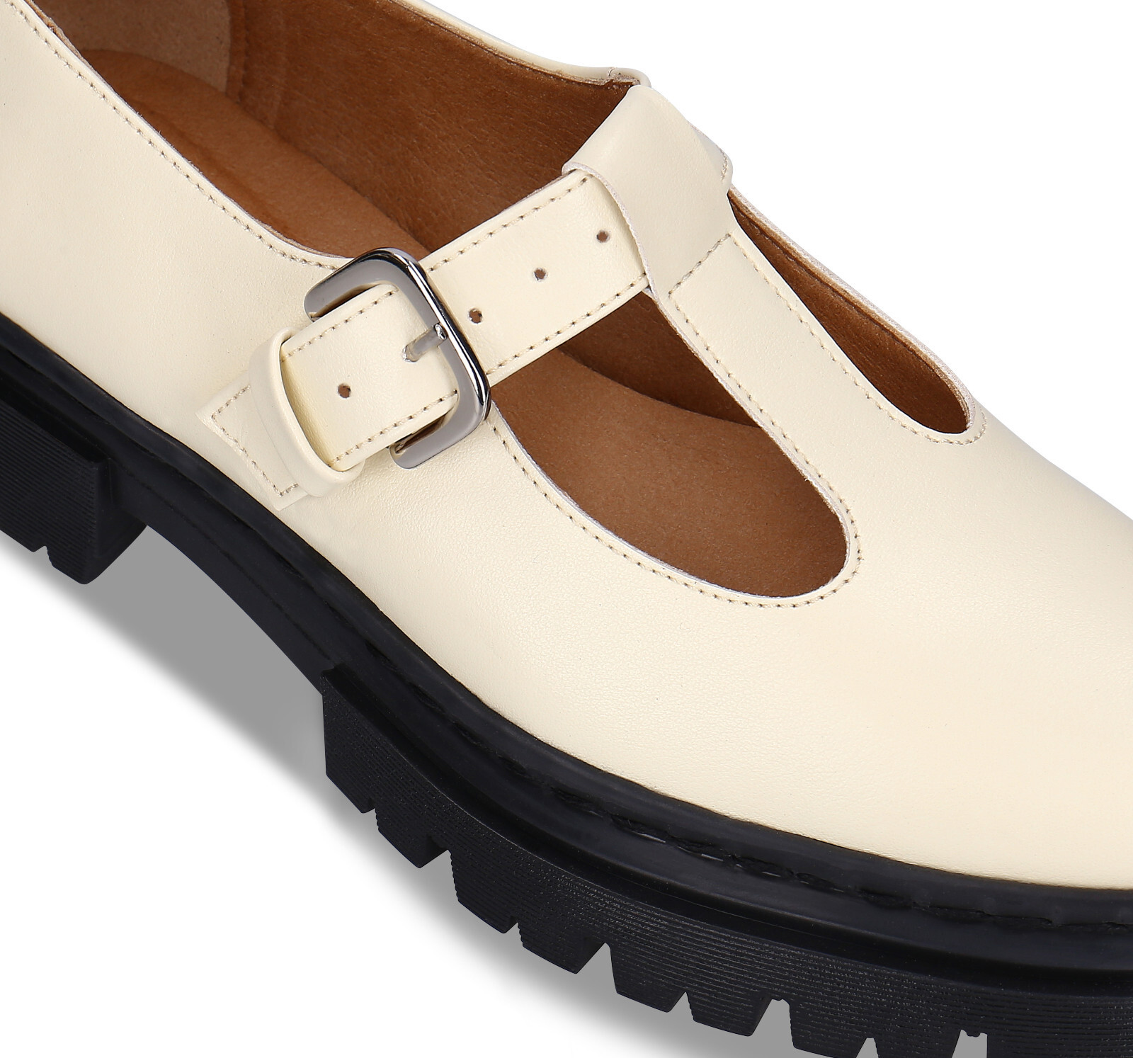 Mary Jane shoes women vegan white apple skin silver buckle straps ridged soles