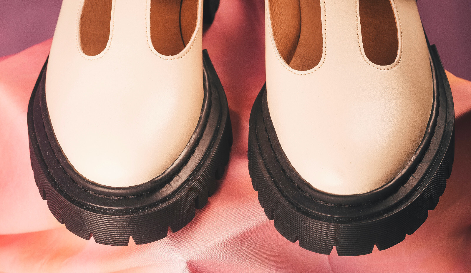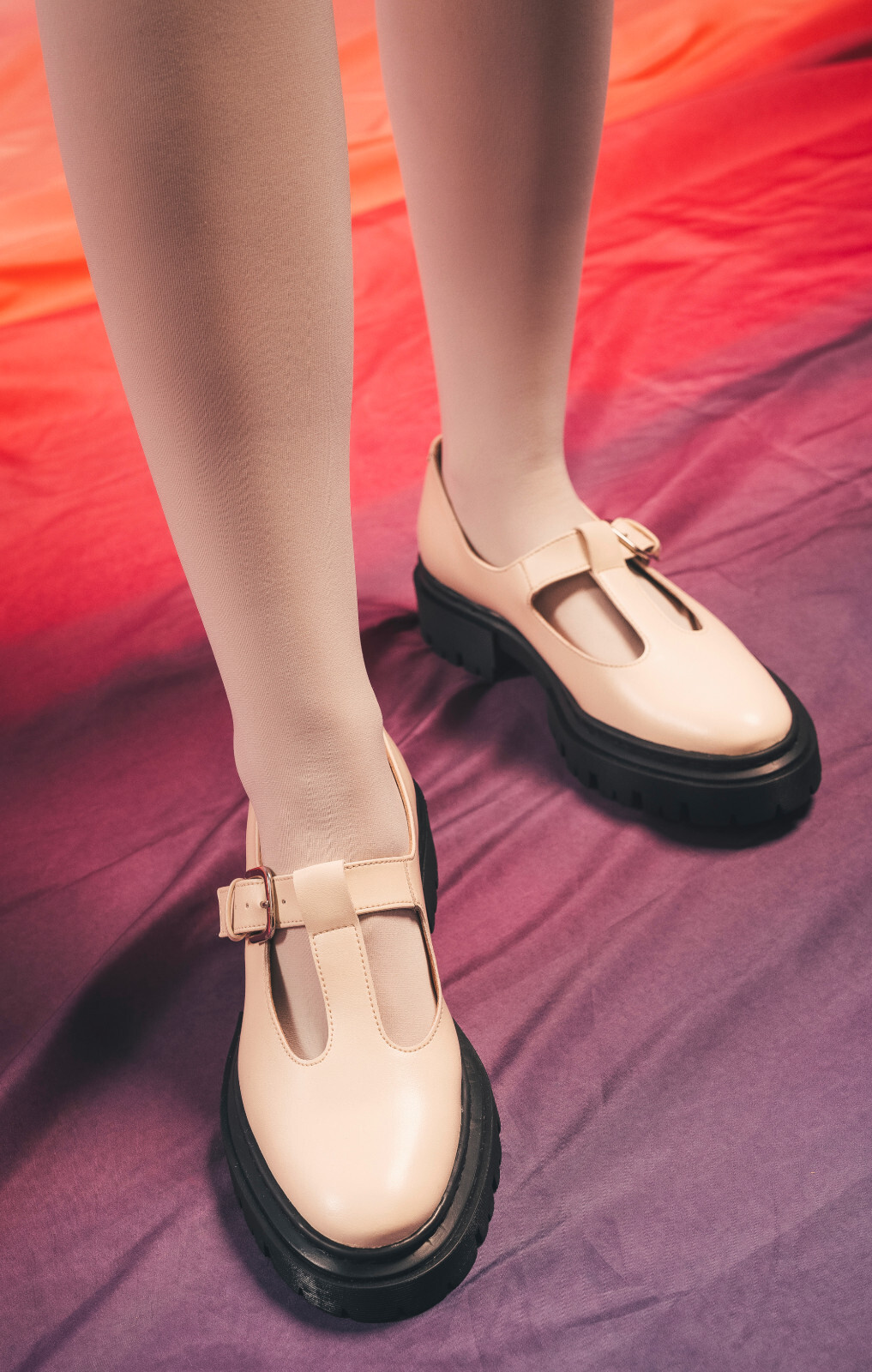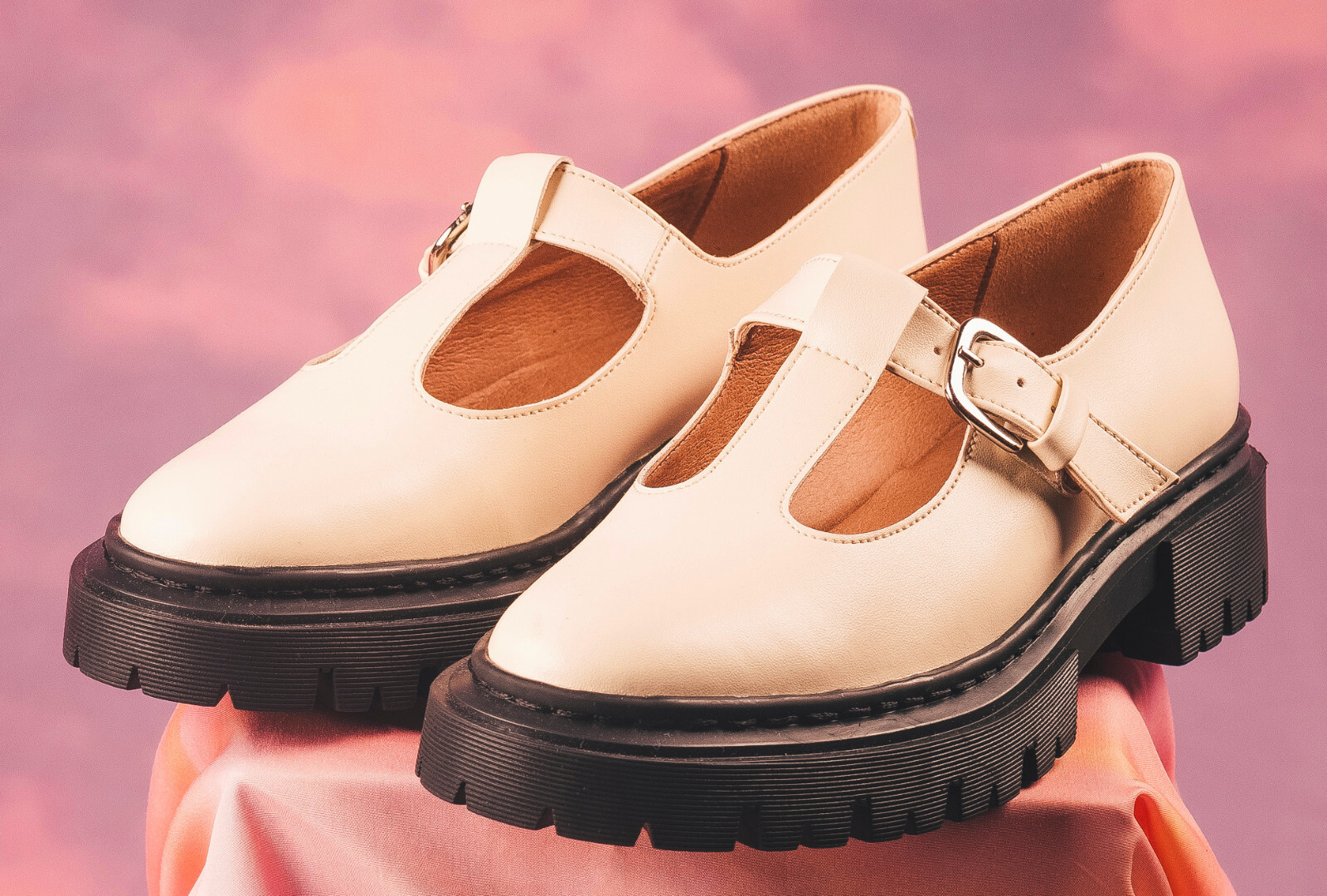Mary Jane shoes women vegan white apple skin silver buckle straps ridged soles