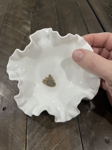 Fenton Hobnail White Milk Glass Ruffled Edge Trinket Dish With Sticker 1970’s