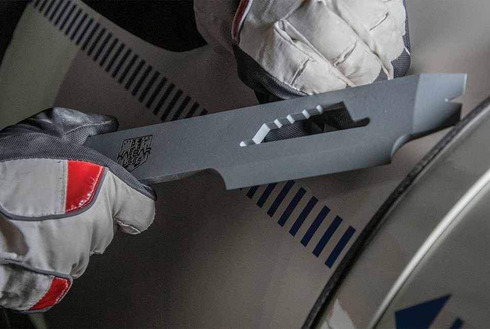 Lanyard Hole, Pry Bar Tip, Slotted Wrench Opening, And Chiseled Blade |