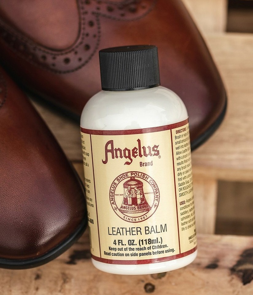 FOR SALE IS ONE (1) NEW 4 fluid ounce BOTTLE OF ANGELUS BRAND LEATHER BALM LIQUID CREAM MANUFACTURED BY ANGELUS SHOE POLISH COMPANY MPN 210-04-000 UPC# 086366210000. THIS THICK AND CREAMY FORMULATION IS A BLEND OF CARNUBA WAX, NATURAL OILS, AND CLEANERS, THIS IS ONE OF THE FLAGSHIP FORMULATIONS OF ANGELUS SHOE POLISH COMPANY, THE SAME BASIC TIME TESTED FORMULA CREATED IN 1907, PROUDLY SOLD FOR DECADES. GREAT FOR ALL SMOOTH LEATHERS. APPLY WITH A CLEAN CLOTH, ALLOW TO DRY, POLISH TO A MELLOW GLOSS. ANGELUS LEATHER BALM WILL HELP KEEP LEATHER SOFT, SUPPLE AND CONDITIONED. LEATHER DOES NOT BECOME slick, MAKING THIS A GREAT OPTION FOR USE ON SHOES, BOOTS, HANDBAGS, SADDLERY, LEATHER BOUND BOOKS, JACKETS, UPHOLSTERY ,HOLSTER, ETC. ANGELUS QUALITY, USA MADE IN SANTE FE SPRINGS, CALIFORNIA, USA. ANGELUS LEATHER CARE PRODUCT HAVE BEEN USED FOR OVER ONE HUNDRED YEARS (since 1907) ON SADDLES, BOOTS, SHOES, LUGGAGE, UPHOLSTERY, ETC. YOU WILL RECEIVE ONE (1) NEW BOTTLE OF GENUINE ANGELUS LEATHER BALM 4 fluid ounce SIZE SHIPPED BY USPS FIRST CLASS MAIL.....