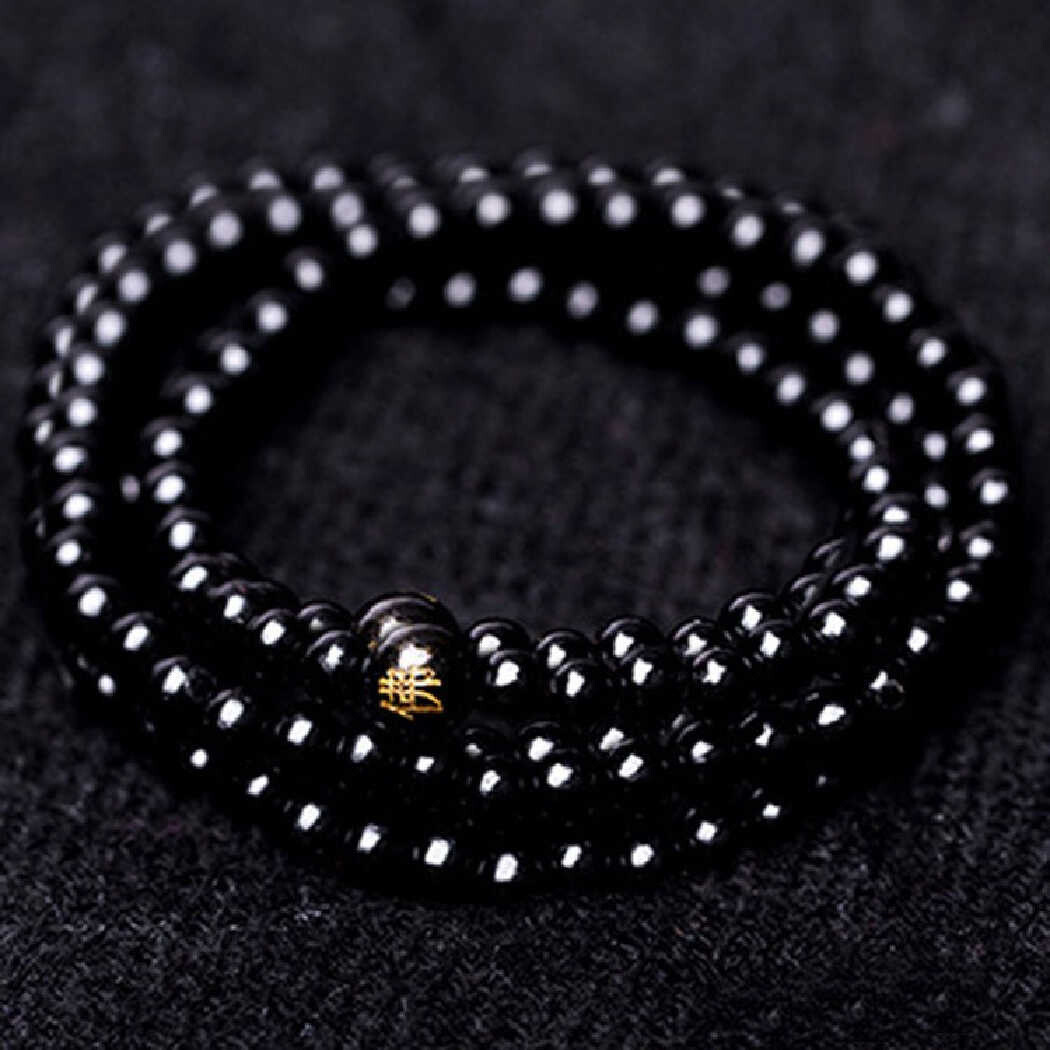 Stretch Wrap Mala Bracelet 108 6mm Buddha Bead Black Wood Buddhist Prayer Beads