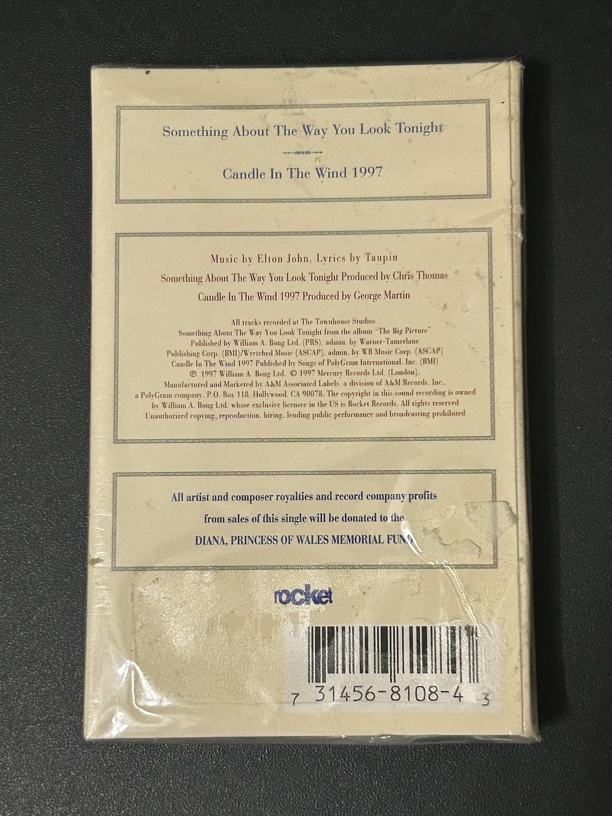 1997 Elton John cassette single - Tribute to Princess Diana. Includes ?Something About the Way You Look Tonight? and ?Candle in the Wind.?
