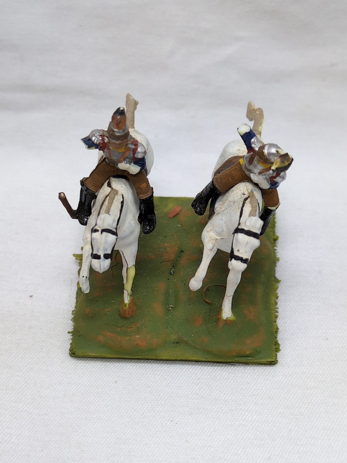 There's figures that are loose on the horses or need to be reglued. Also, a lot of the paint chips. As well as damage and wear. See pictures please.