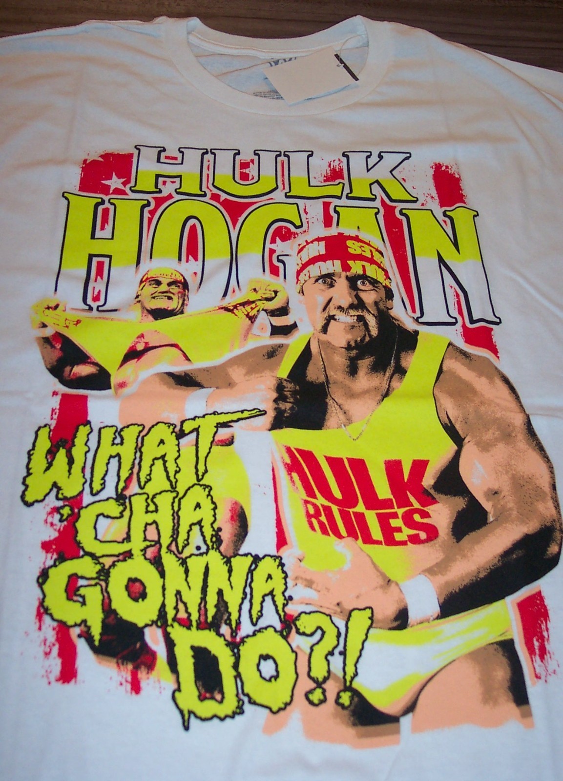 This is a Vintage Style WWF WWE HULK HOGAN What Cha Gonna Do? T-shirt. It is a size 2XL and is NEW with the tag. It is 25 inches from armpit to armpit and 33 inches in length. Combine auctions to save on shipping. D3AD