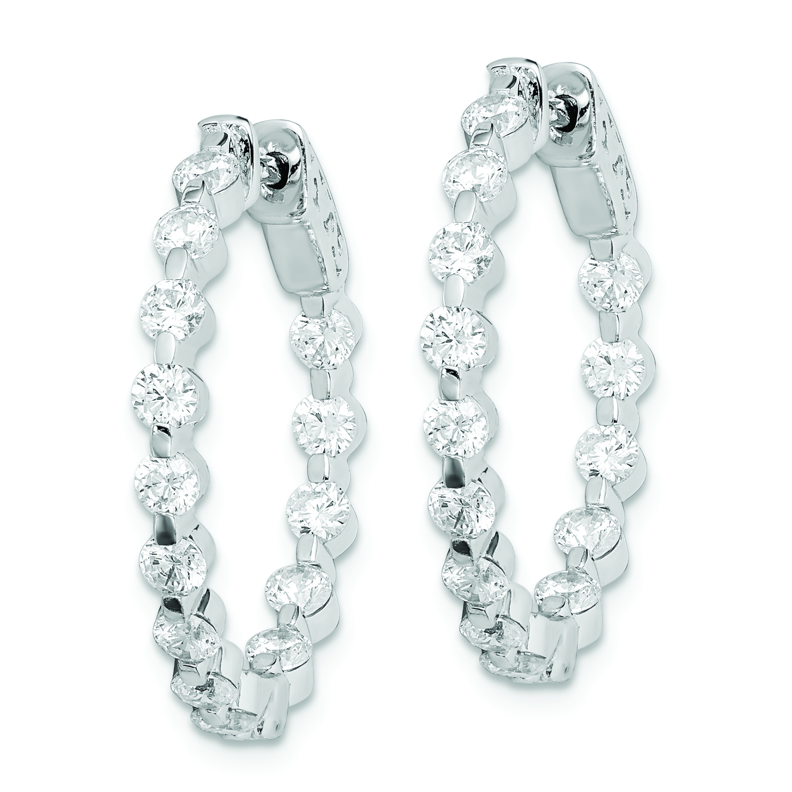 Sterling Shimmer Silver 28 Stone 2.7mm CZ In and Out Round Hinged Hoop Earrings