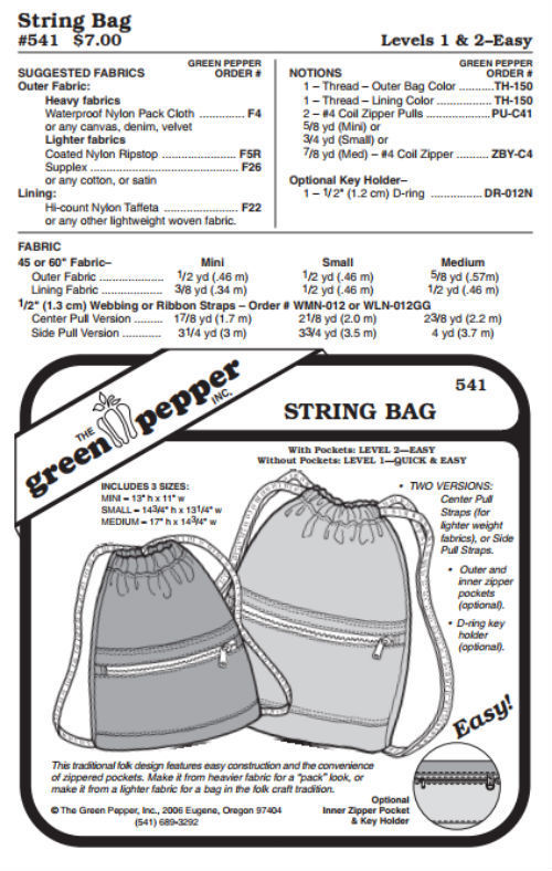 Drawstring Bag Bags Purses Knapsack #541 Sewing Pattern (Pattern Only) gp541
