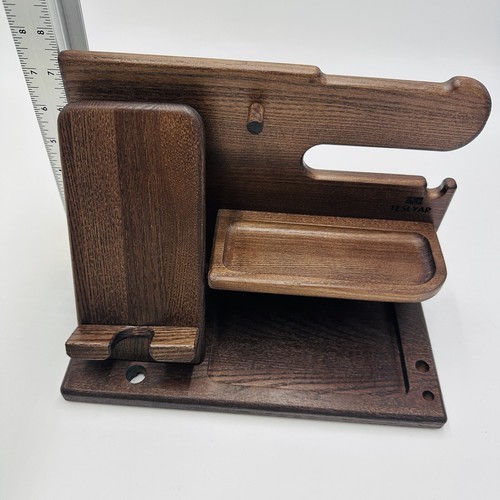 Teslyar Wood Phone Docking Station Ash Key Holder Night Stand Office Decor
