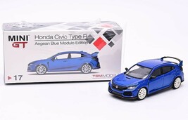 1:64 Scale Metal Diecast ? 2017 Honda Civic Type R FK8 LHD Aegean Blue Modulo Edition - Length: 2.75", Width: 1.25?