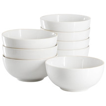 Gibson Home Ogalla 8 Piece Fine Ceramic 6 Inch 22 Ounce Cereal Bowl Set in White with Gold Rim
