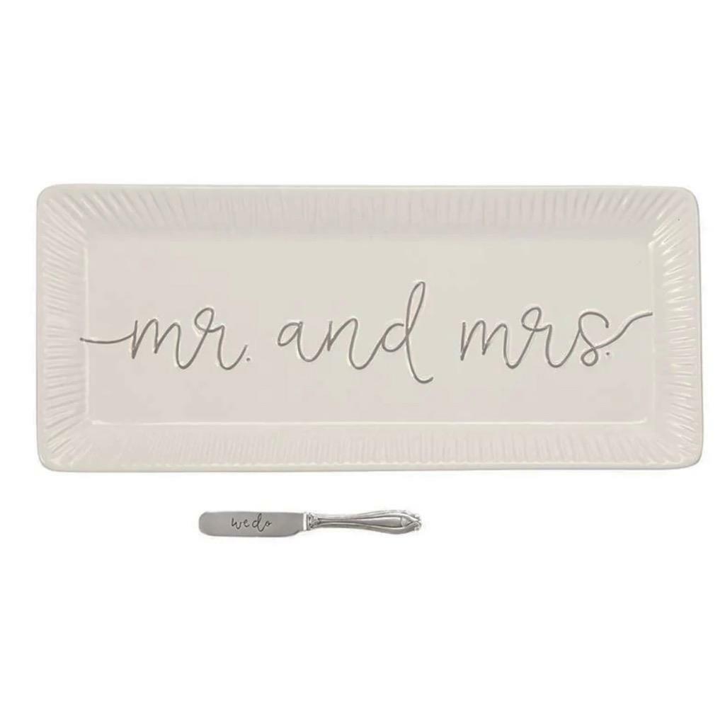 Mr and Mrs Engraved Hostess Tray and Spreader With Words We Do by Mud Pie New