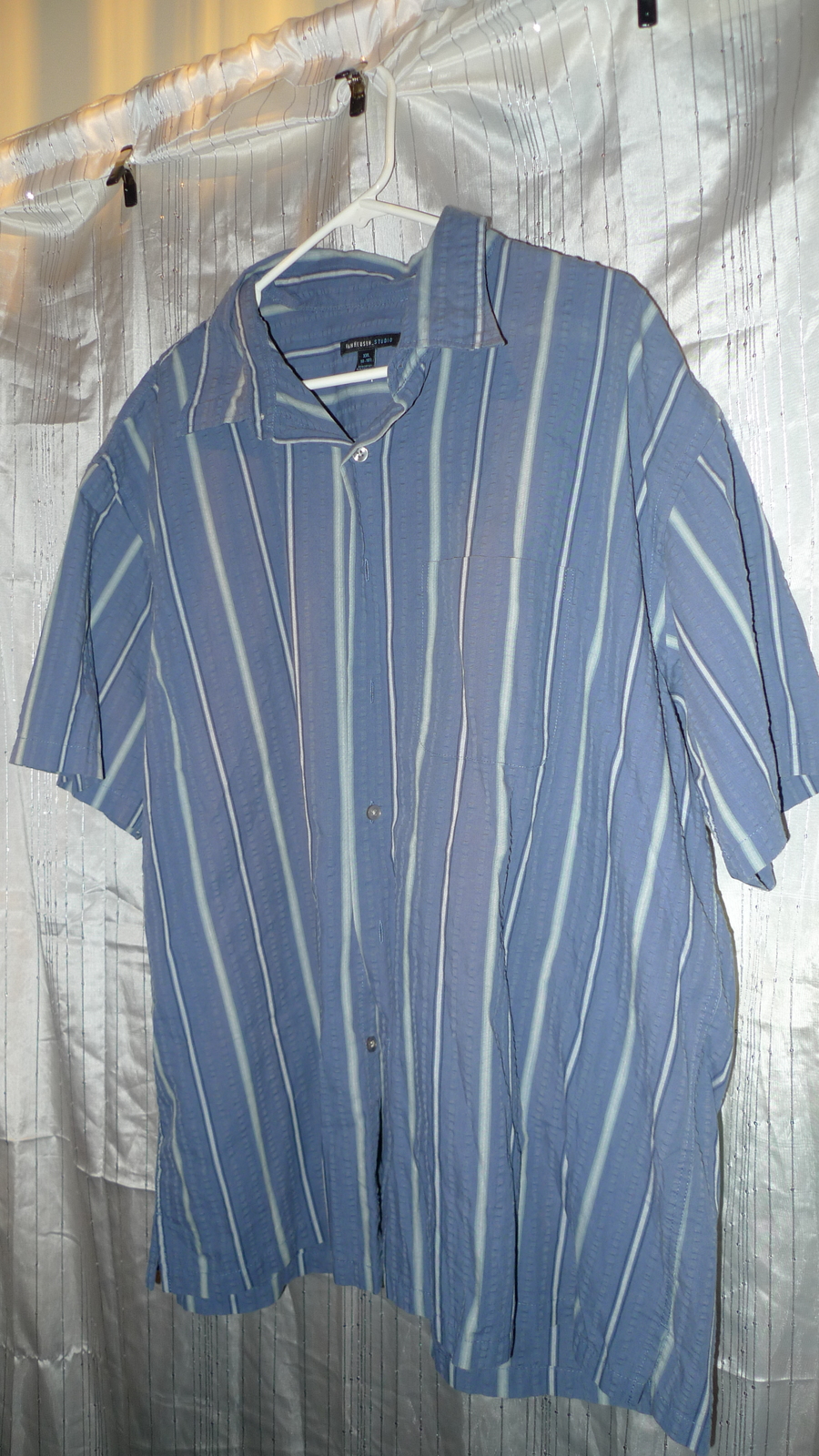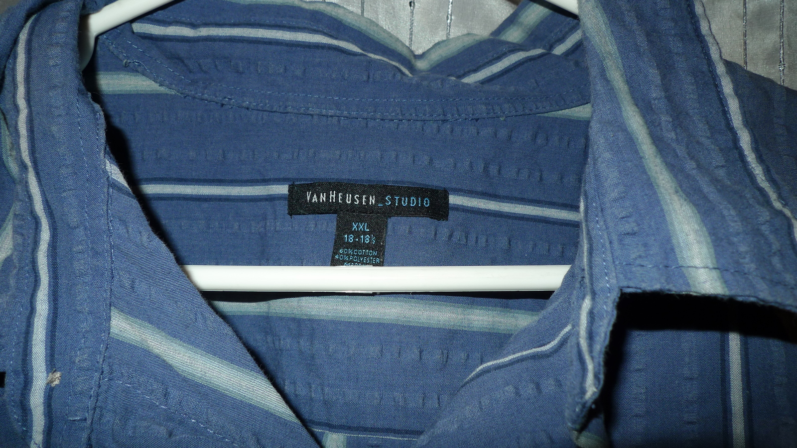 Van Heusen no iron men's 2XL 60% cotton 40% polyester classy short sleeve button dress shirt. Bought at SEARS wore one time. Made in Bangladesh.