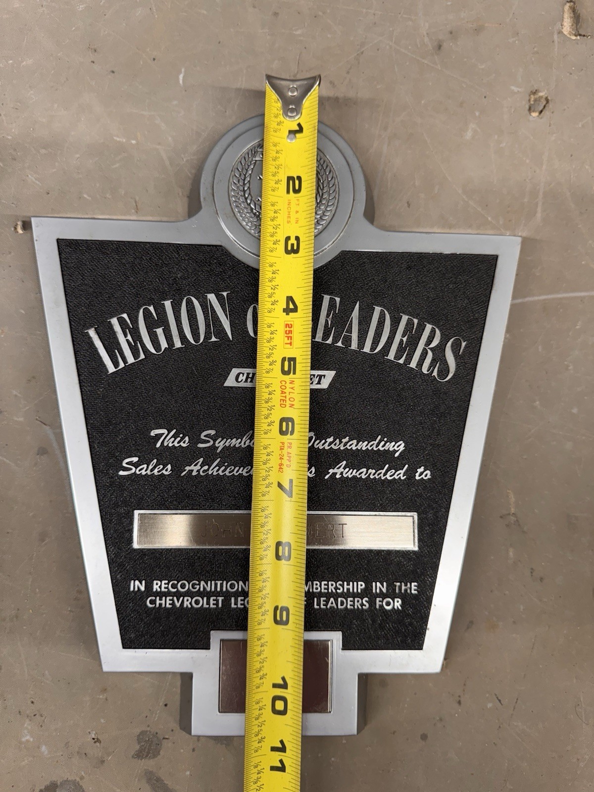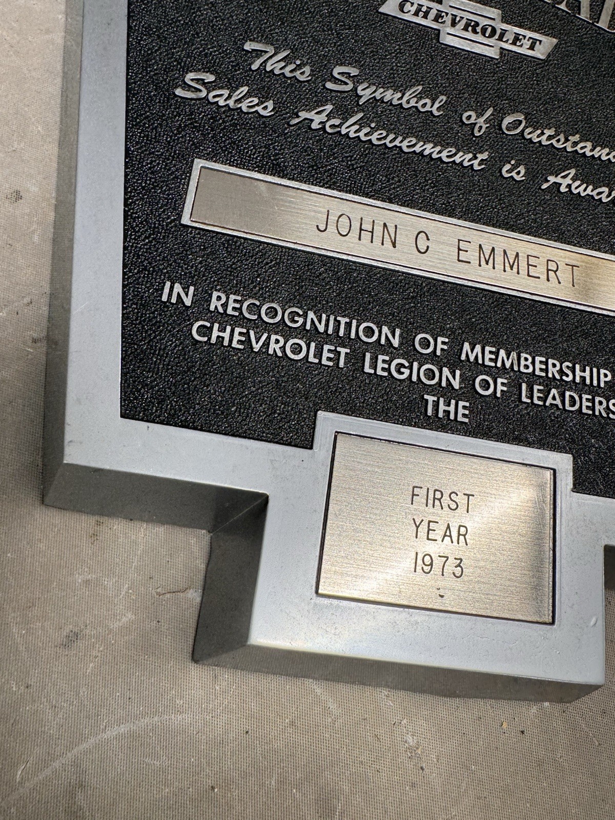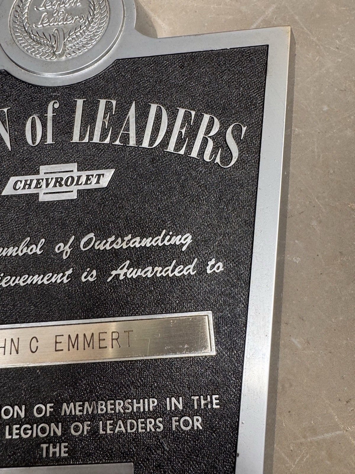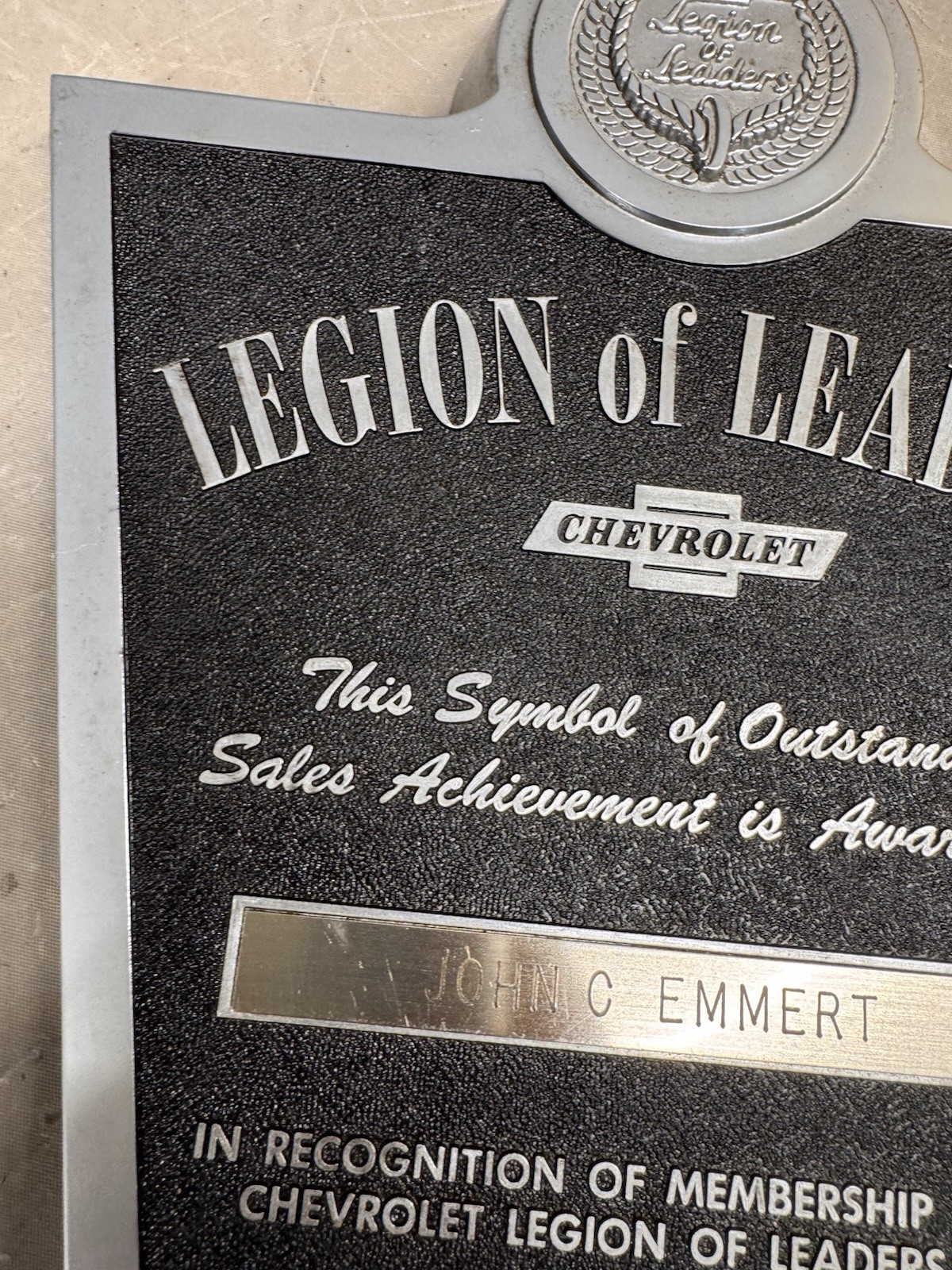 Vintage Chevrolet Legion of Leaders Dealer Sales Acheivement Award Plaque 1973