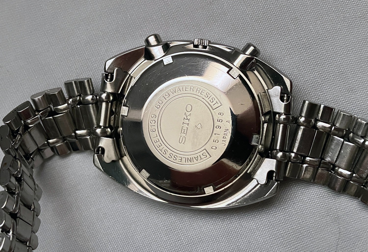 Screw-on Caseback with marking "6139-6019" "WATER RESIST Japan A".