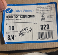 The product is a set of United Fittings liquid-tight 90 degree nylon connectors, with a 3/4" diameter. These connectors are designed for conduit and tubing, specifically for use in electrical equipment and supplies businesses. The connectors are made by the brand KDDINDUSTRIES and feature a liquid-tight design to ensure a secure connection. With a pack of 10qty, these connectors provide a reliable solution for connecting various electrical components in industrial settings.