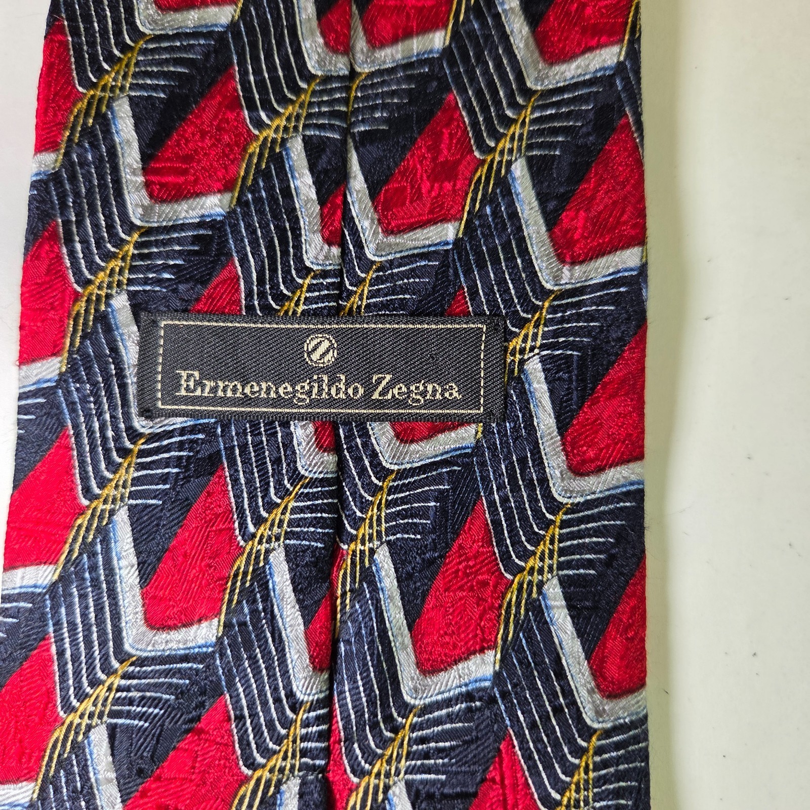 Ermenegildo Zegna Silk Tie Geometric Red Navy Gold Made in Italy 58"