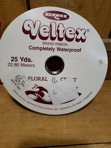 Vintage 3/4" Veltex Brand Completely Waterproof Ribbon Red Christmas Berwick USA