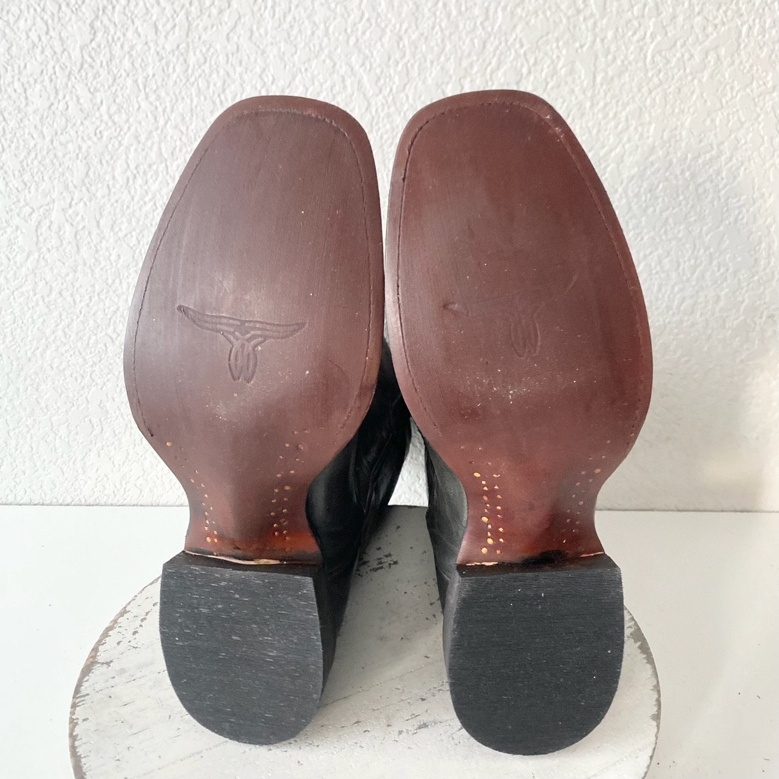 Lane Mens Black Cowboy Boots 9 D Genuine Leather Western Casual Square Toe