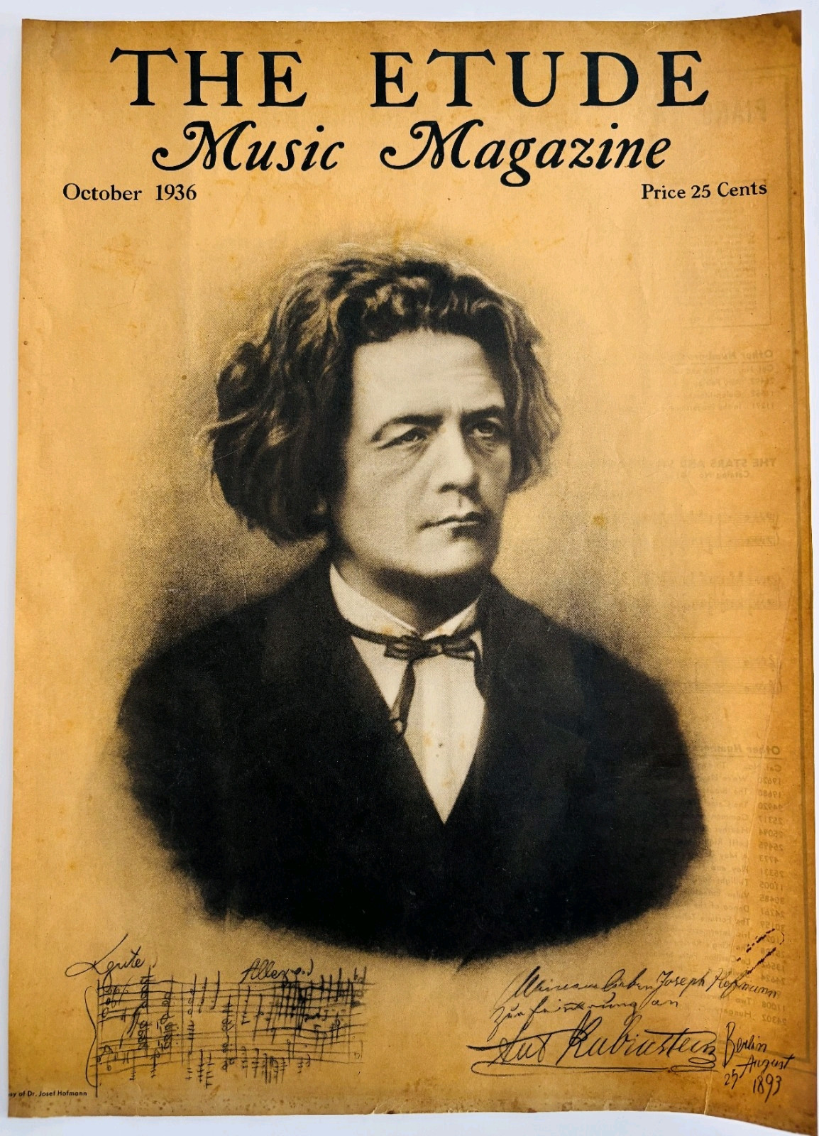 1936 Anton Rubinstein Etude Cover Page Russian Piano Player Musician DWJJ3