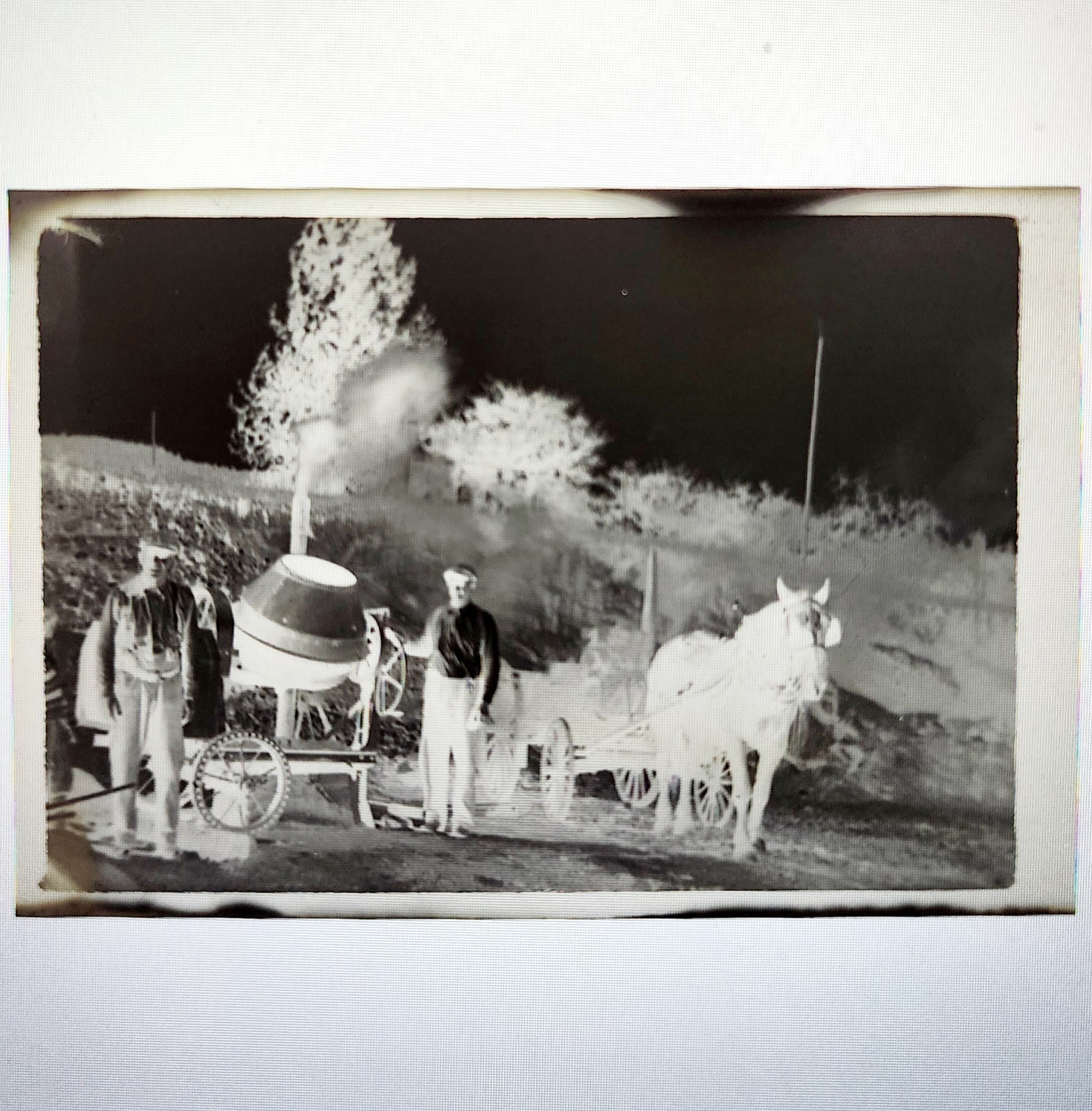 1920s Photograph Negative Original Horses Cement Mixer Carts Transportation C65