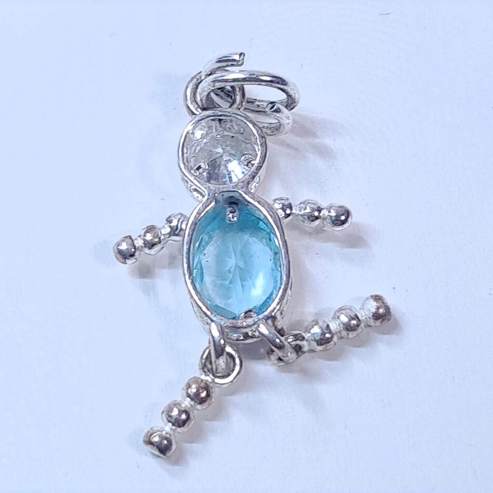 Birthstone Boy Charm Pendant Blue March 925 Sterling Silver faux Aquamarine