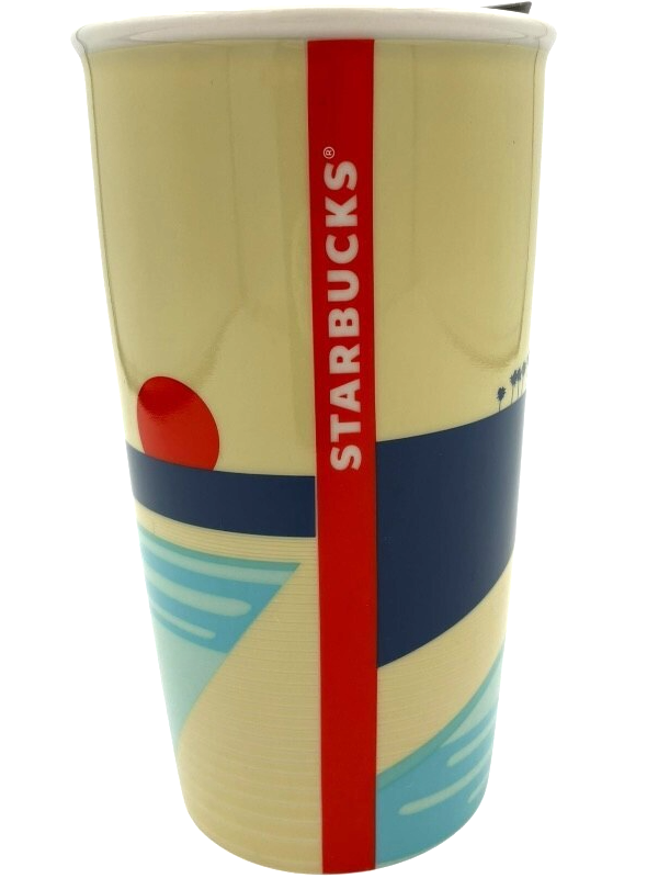 Starbucks 2017 California Ceramic 12 oz Tumbler Travel Mug with Lid 6" tall