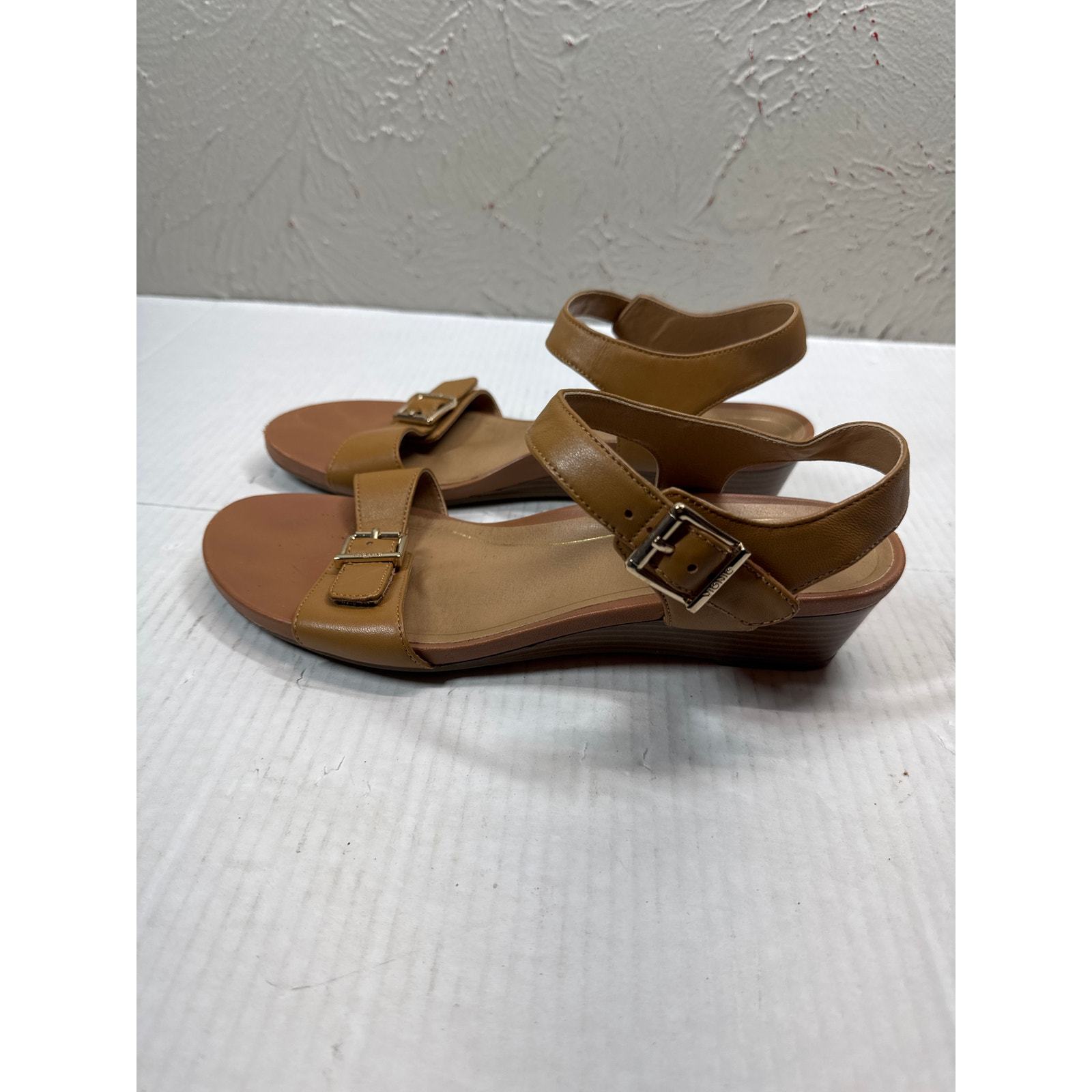 Vionic Shoes Womens Frances Sandals Tan Leather Comfort Orthotic Wegde Size 10