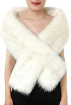 Dikoaina Women's Winter Fake Faux Fur Scarf Wrap Collar Shawl Shrug - White with brown tips