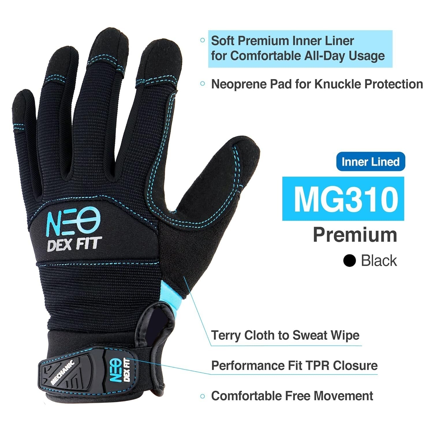 DEX FIT Mechanic Gloves MG310 Premium, Breathable, Washable, Black (L)