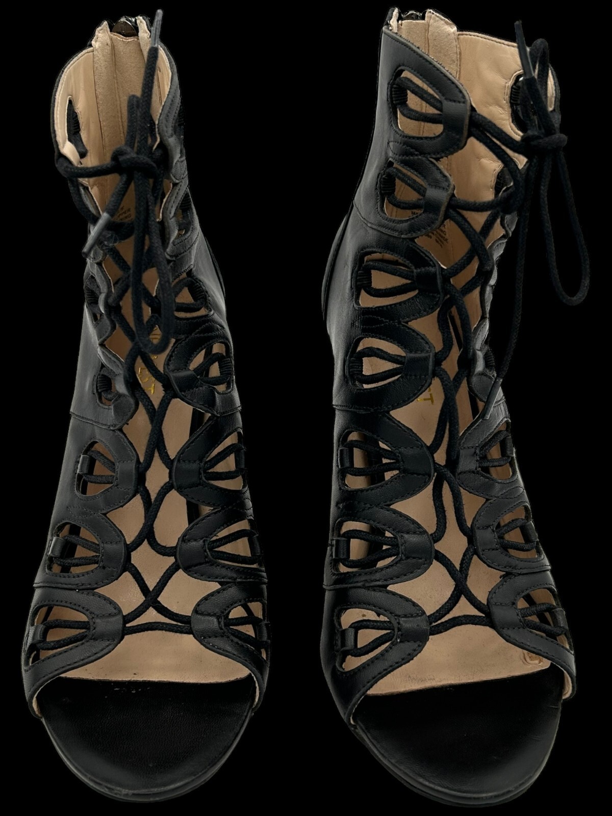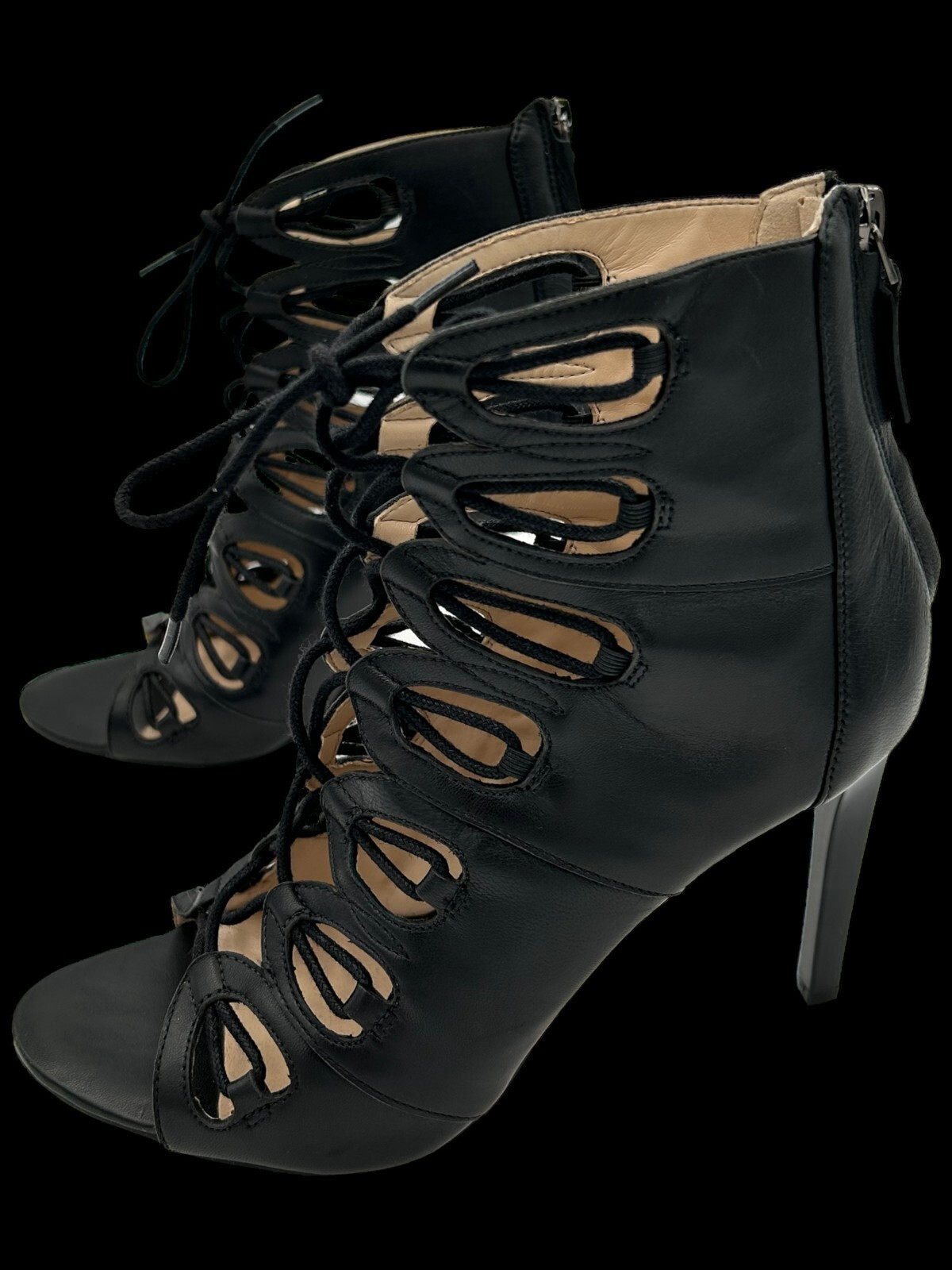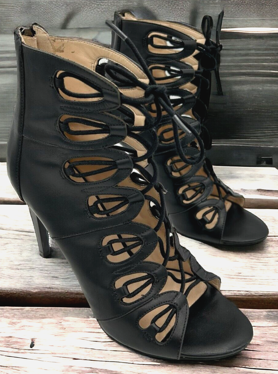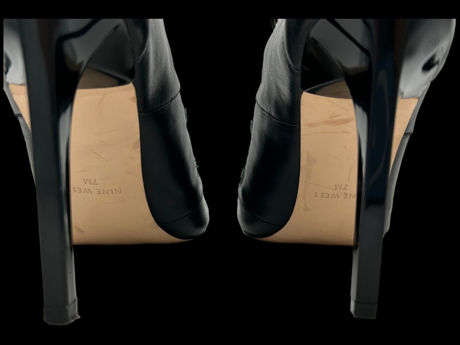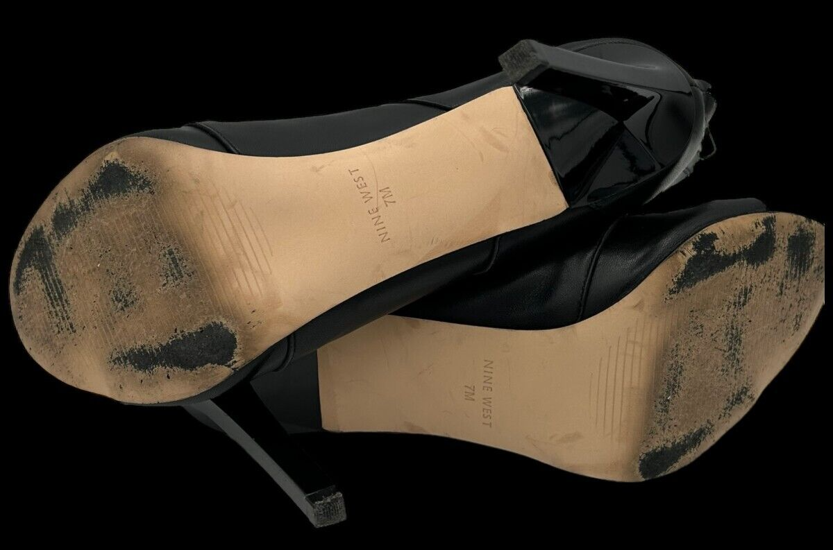 Nine West Leslie Black Leather Heeled Cage Dress Sandals Size 7M
