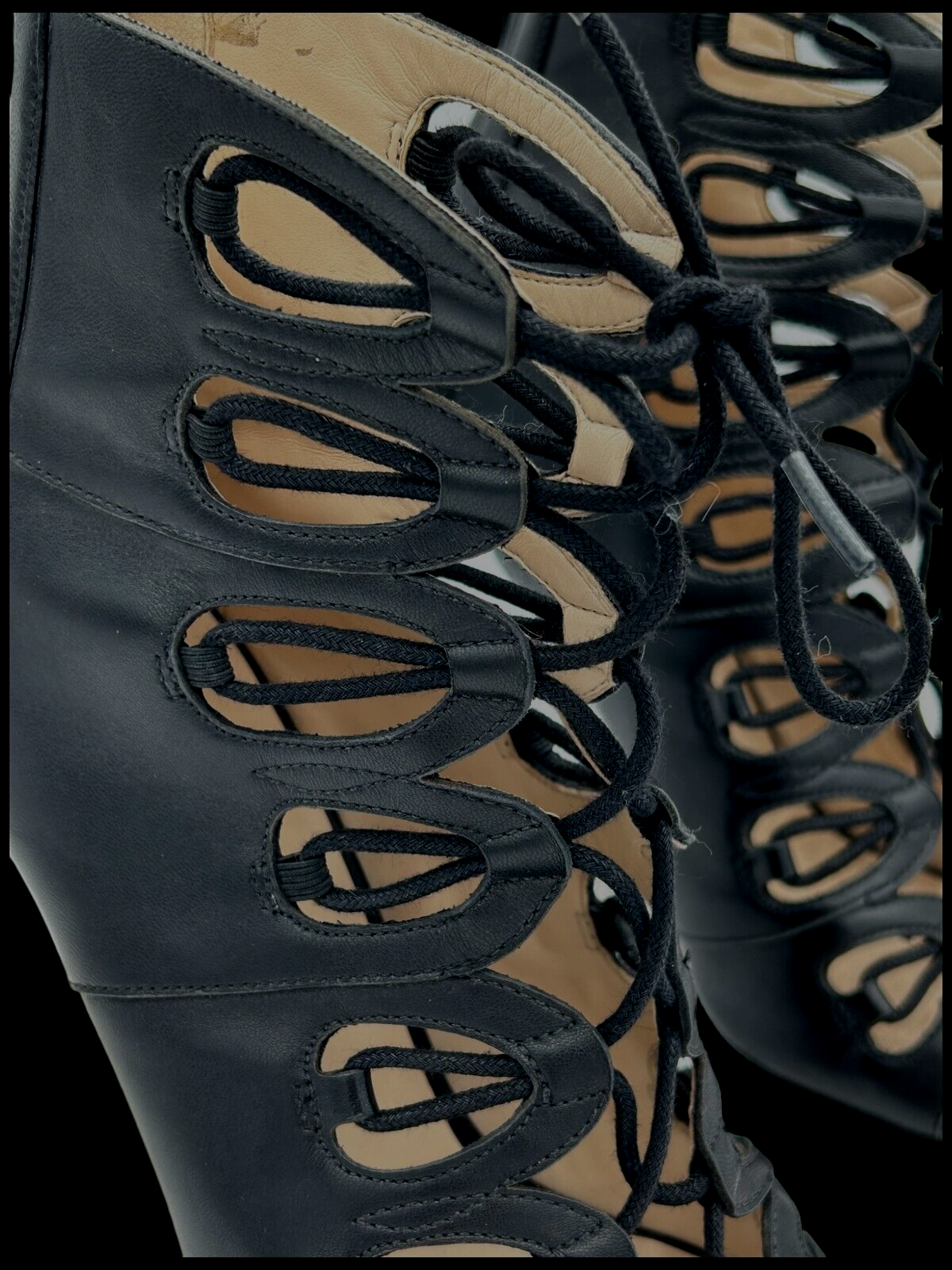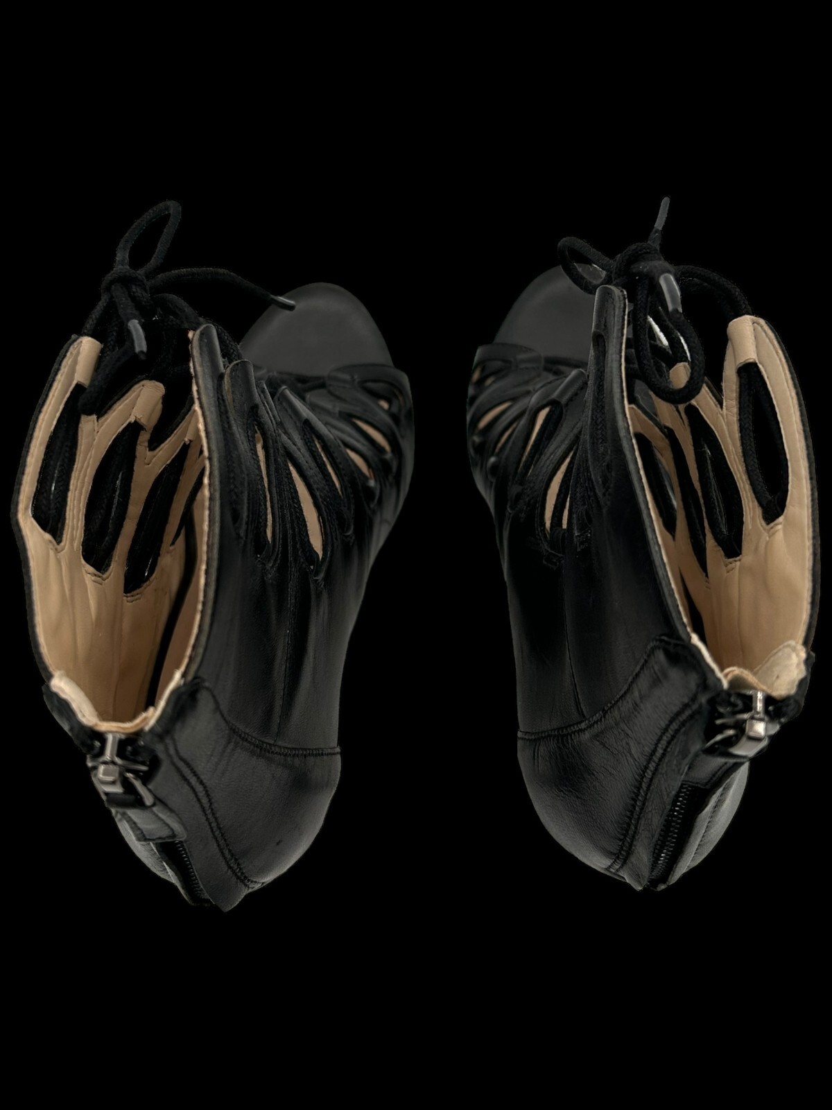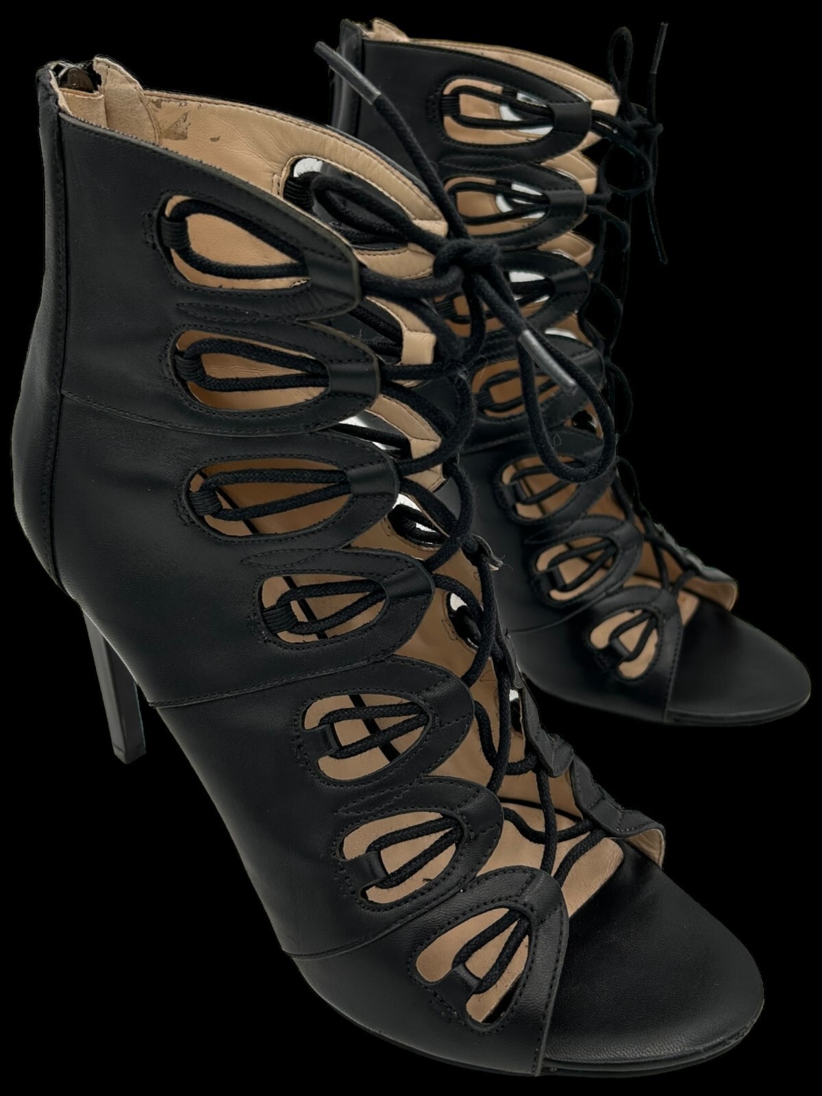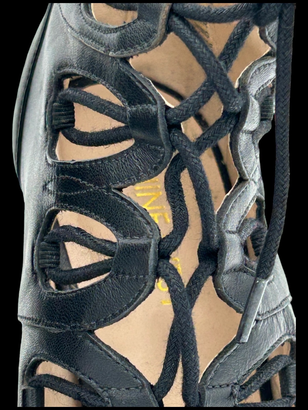 Nine West Leslie Black Leather Heeled Cage Dress Sandals Size 7M