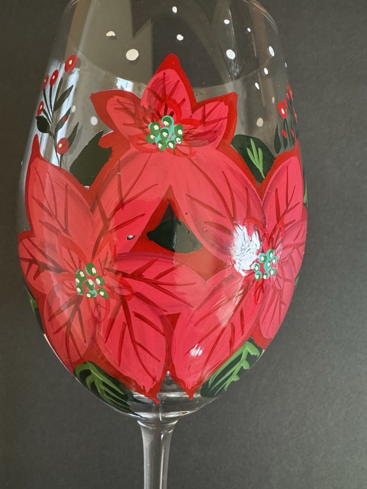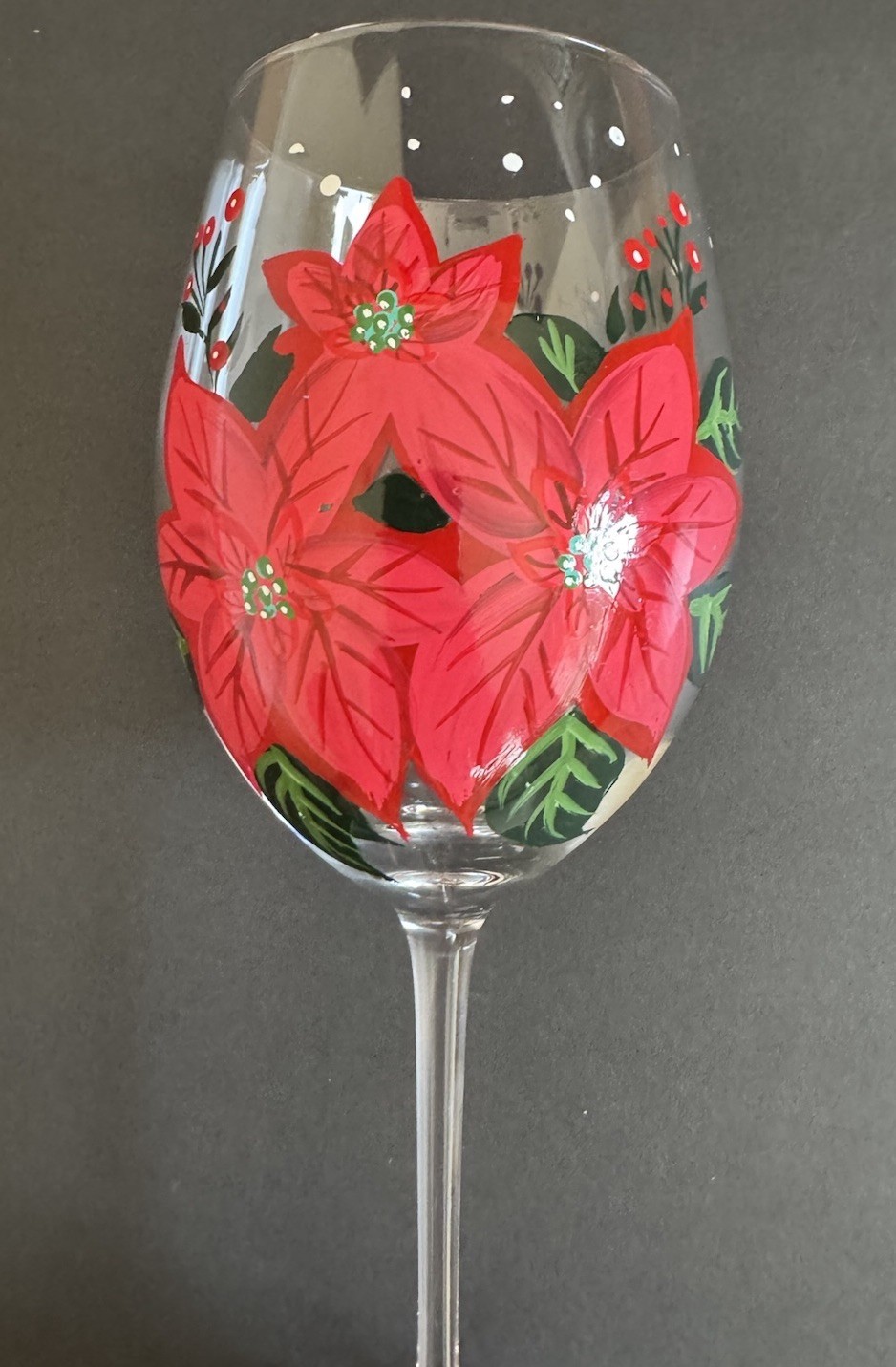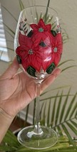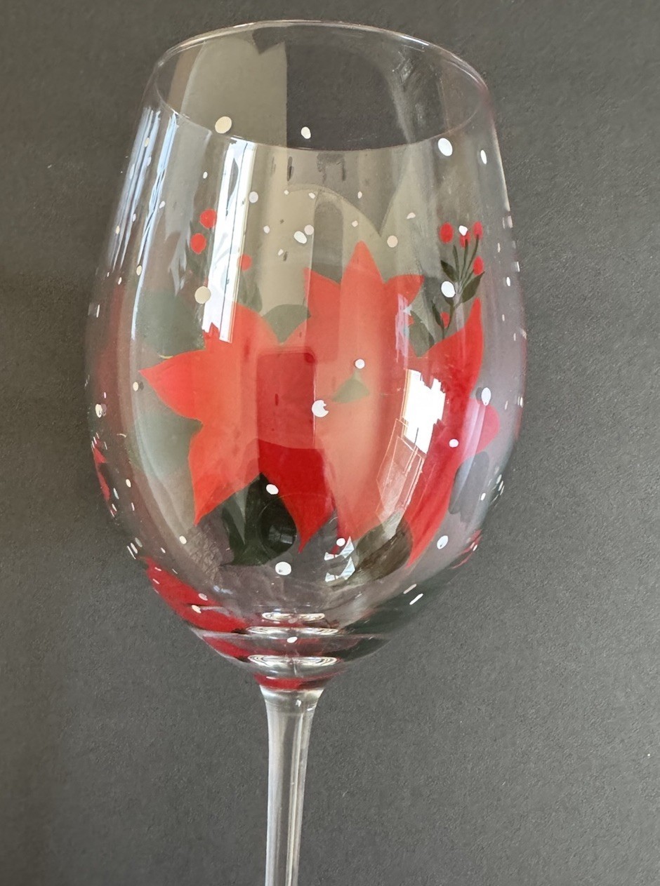 Pier 1 Red Poinsettia Stemmed wine glass, hand painted 9.5" Wine Glass