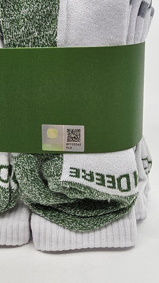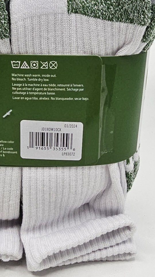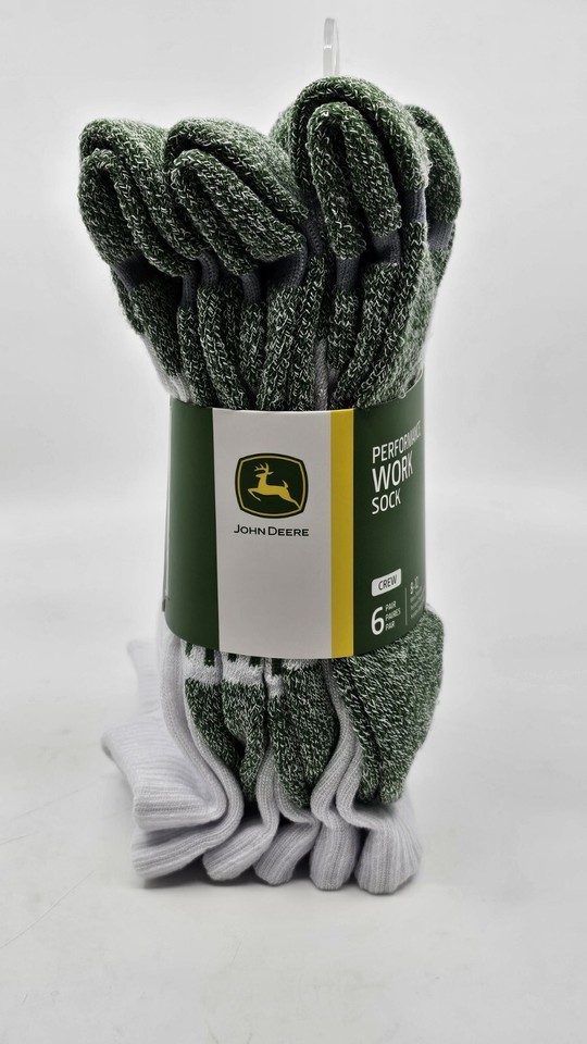 John Deere Men's Crew Socks Size 8-12 6-Pair White/Green Performance Work Socks