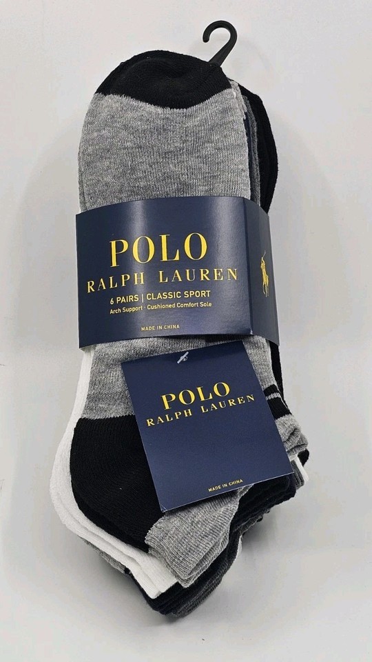 Polo Ralph Lauren Classic Sport 6 Pair Ankle Cut Socks Size Men 6-12.5 New