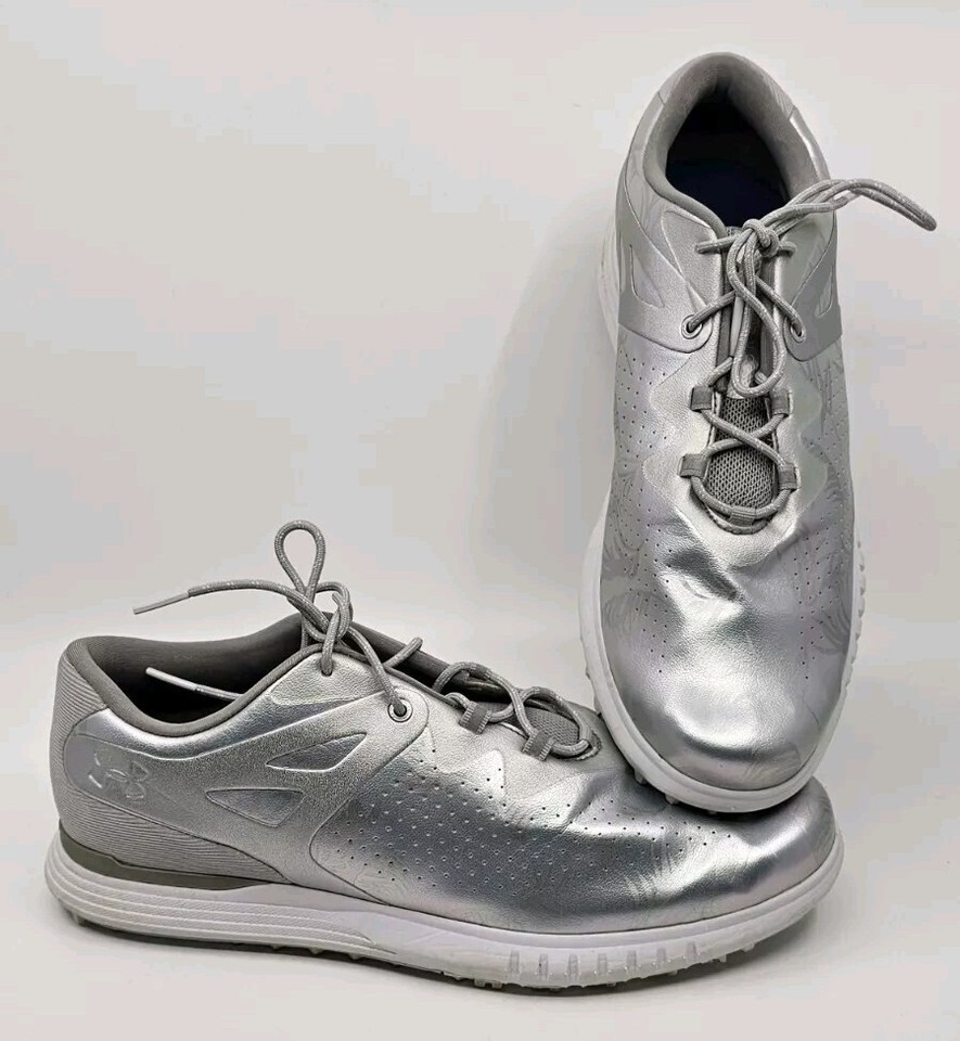 Under Armour Womens Charged Beathe 3023733-100 Silver Golf Cleats Shoes Size 10