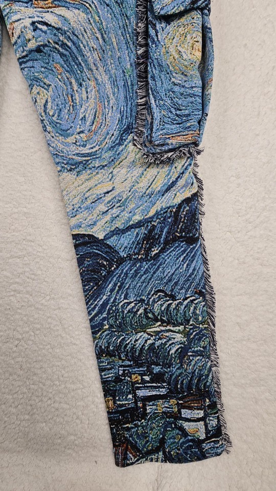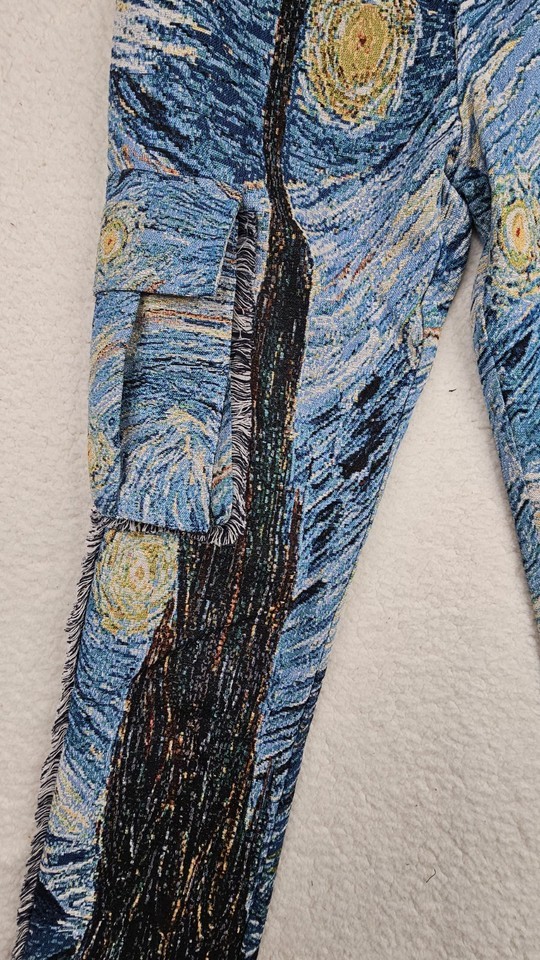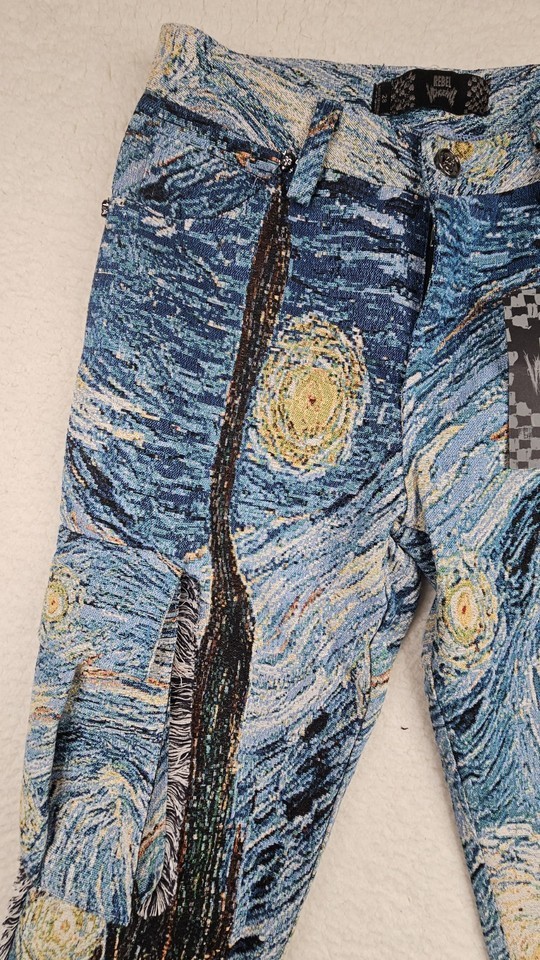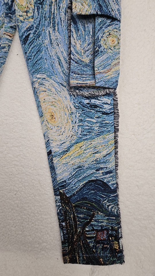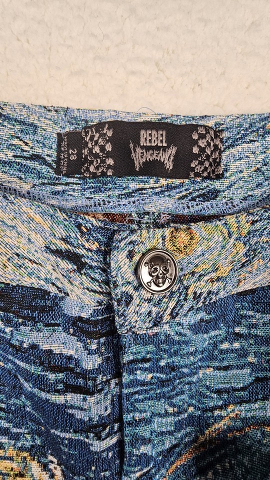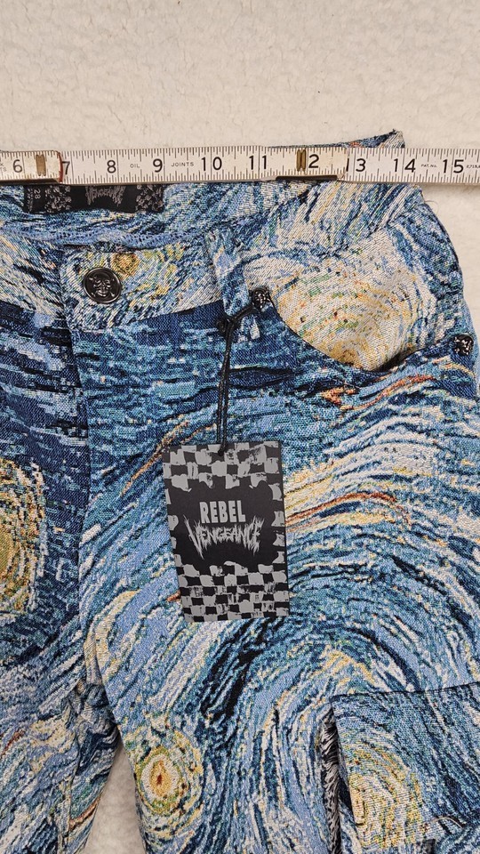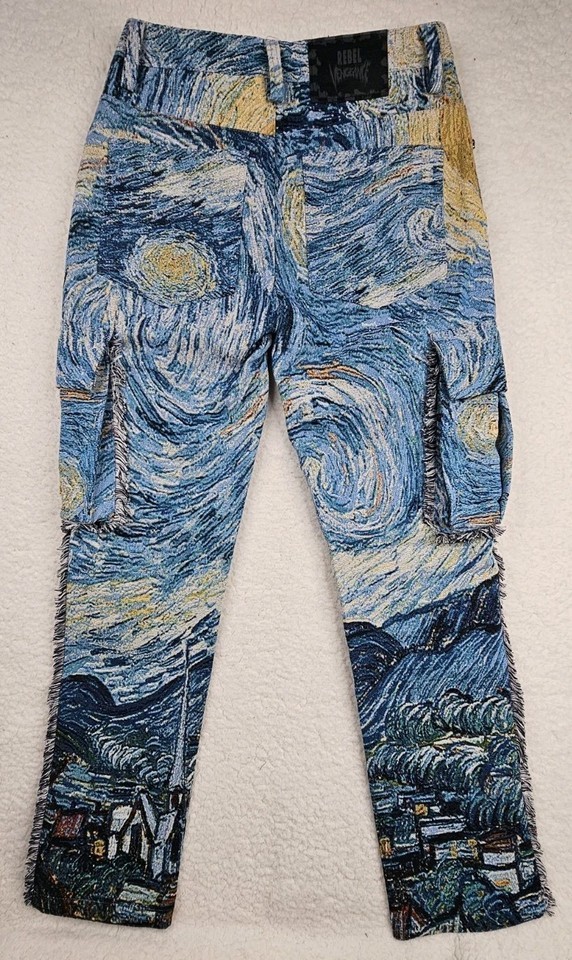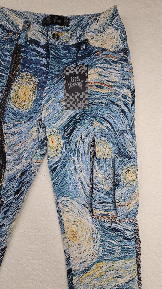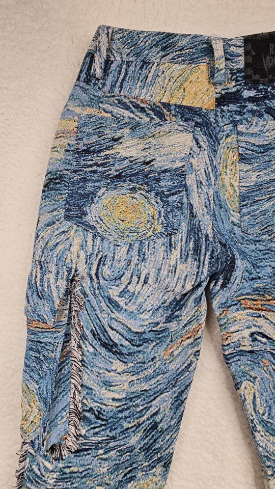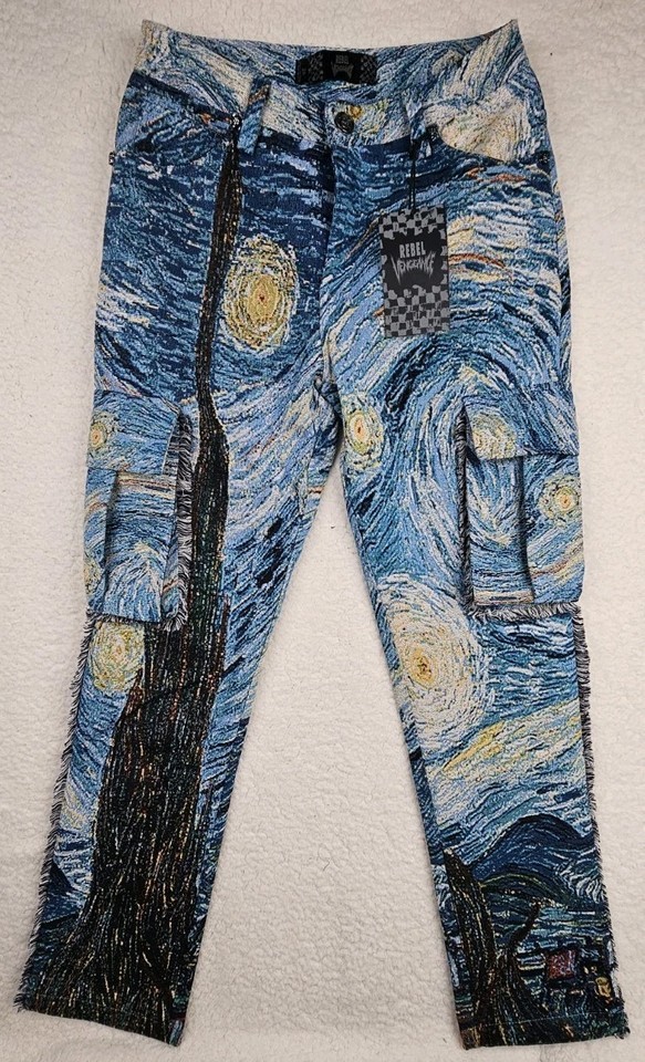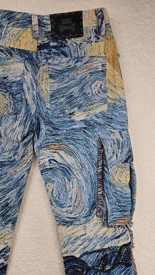 Rebel Vengeance Pants Mens 28 Starry Night Art Tapestry Cargo Frayed Skull