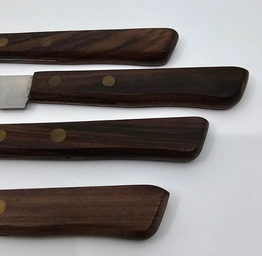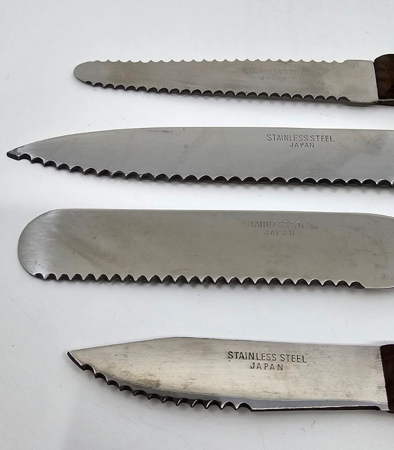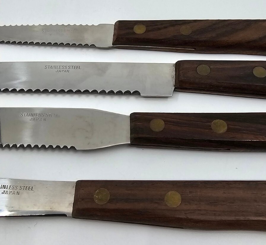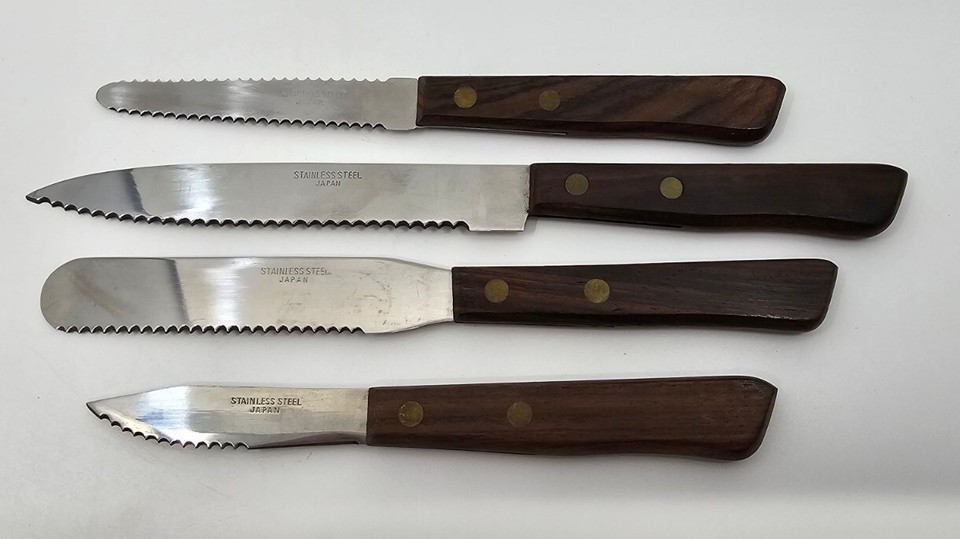 Set of 4 Serrated Knives Stainless Steel Japan Brown Wood Handle