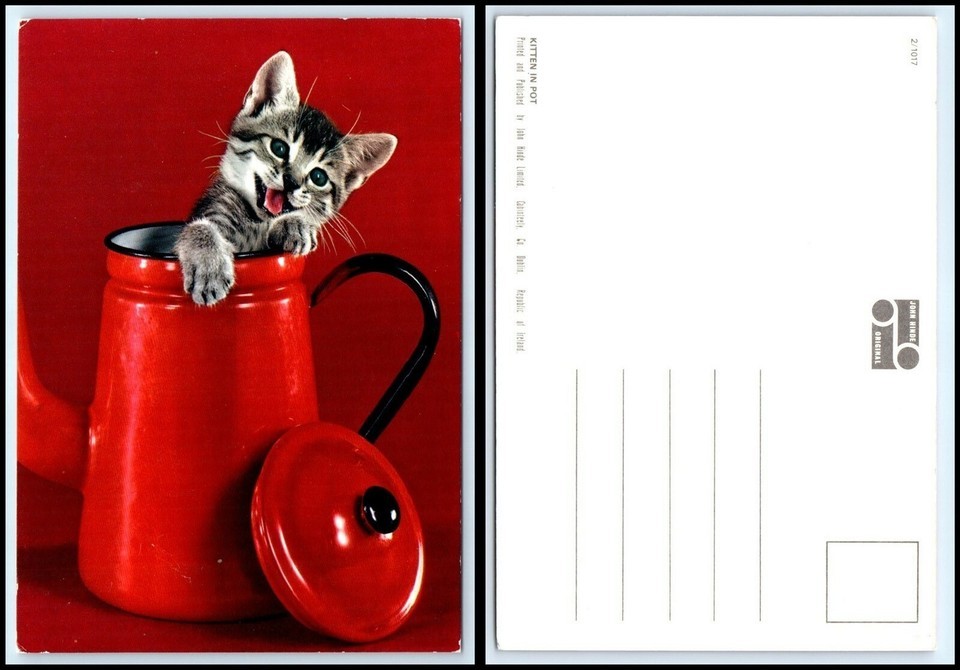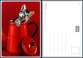 CAT Postcard - Cute Kitten Coming Out Of Tea Pot D20