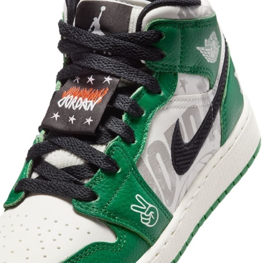 new Nike Jordan 1 mid overbranded GS Youth 5.5Y/women's 7 pine green/sail HF3200