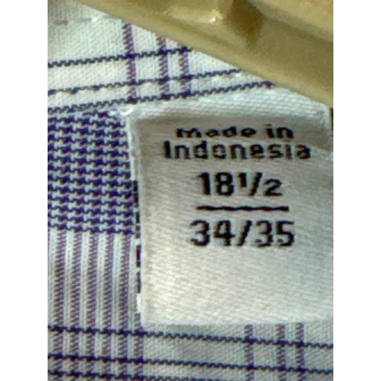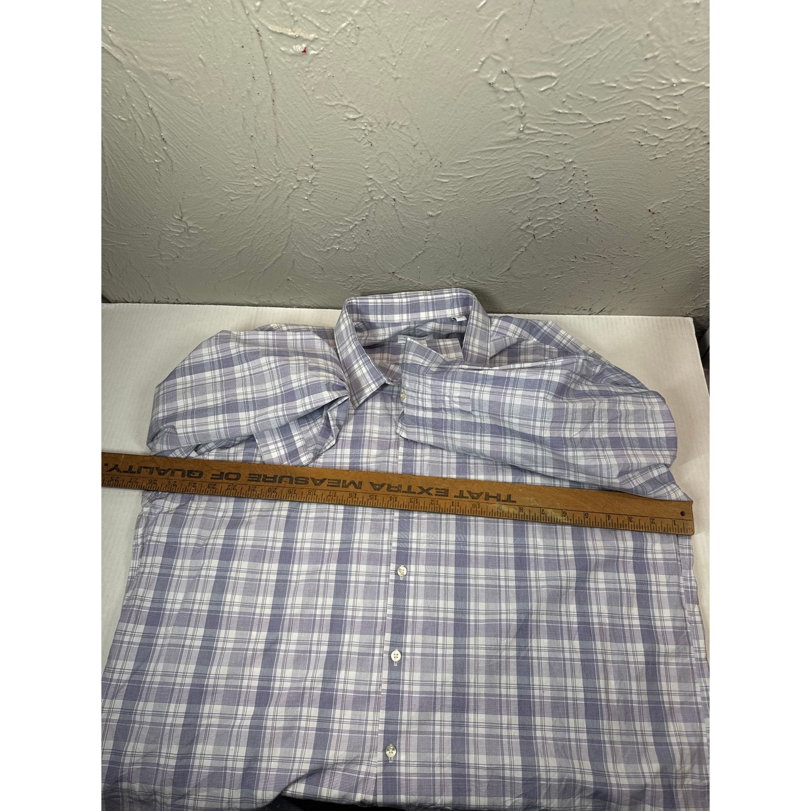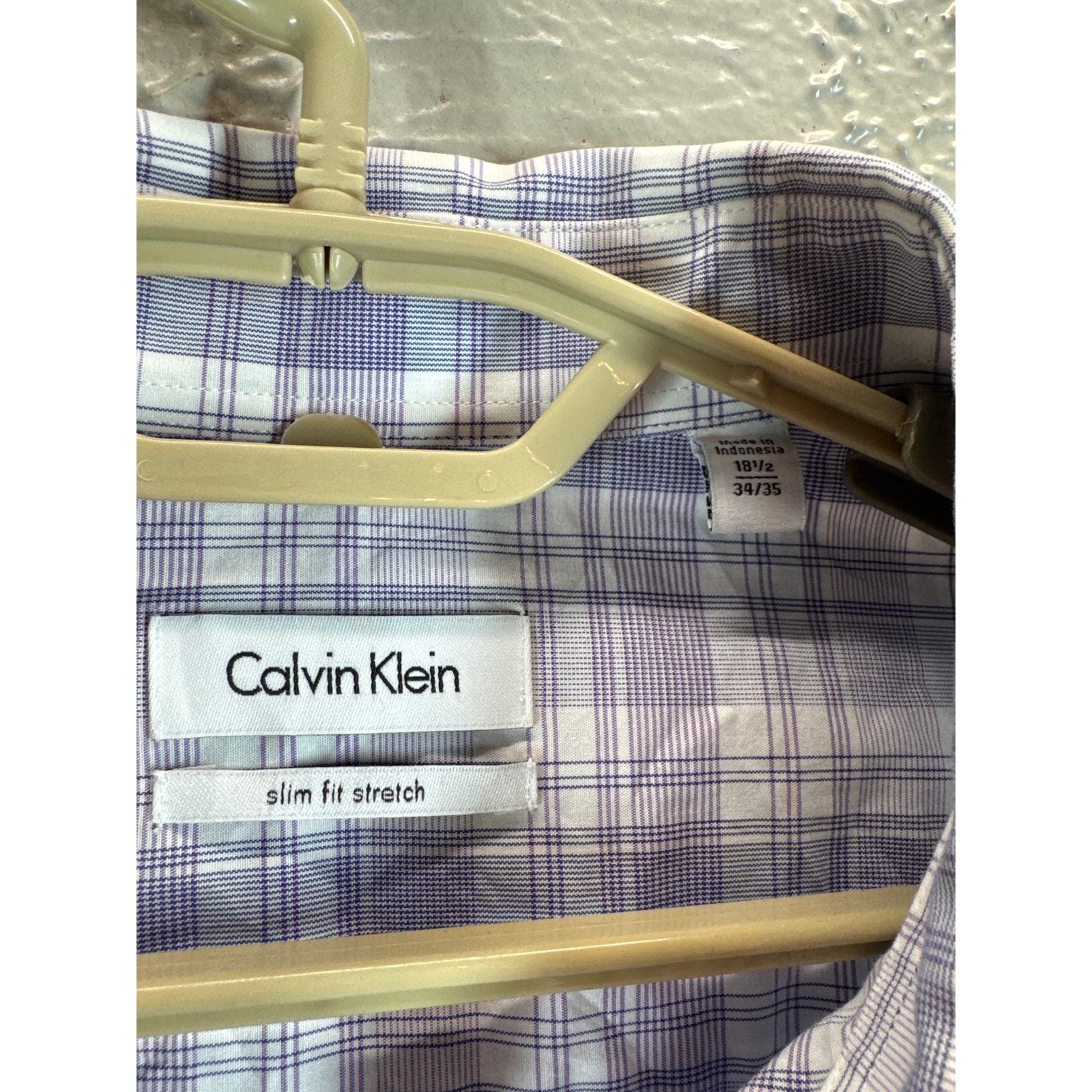 Calvin Klein Mens Blue White Dress Plaid Slim Fit Stretch Shirt Size 18.5 34/35