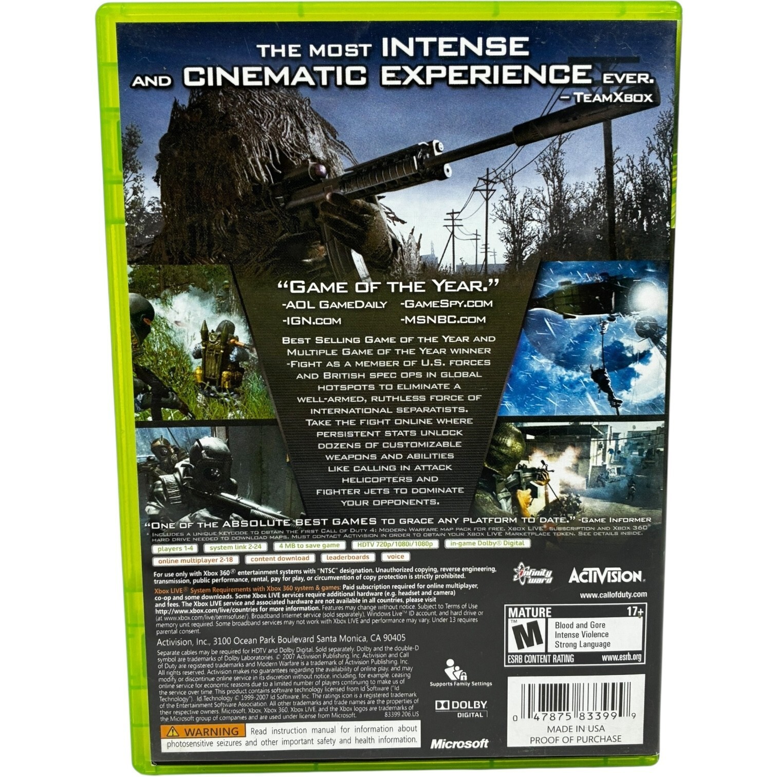 Call of Duty: Modern Warfare 4, Game of the Year Edition- Microsoft Xbox 360 Video Game in Case Complete