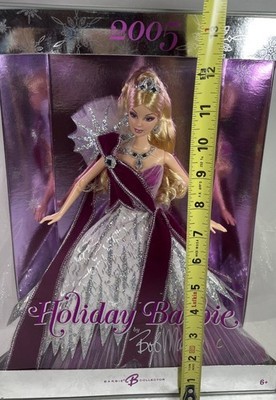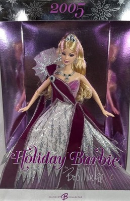This vintage Barbie Collector Bob Mackie Holiday Doll from 2005 features a stunning silver and magenta gown, with a blonde curly hair and blue eyes. This 12-inch fashion doll, part of the Barbie Collector product line by Mattel, comes in its original unopened packaging, making it a desirable collector's item for fans of Barbie dolls and fashion toys. The doll, designed by renowned artist Bob Mackie, embodies a classic Barbie character with a touch of holiday elegance, making it a unique addition to any doll collection.