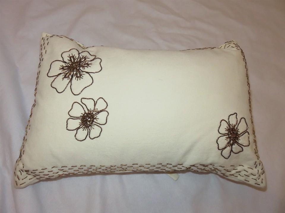 DKNY CITY CHARM Tweed Dreams Cream Metallic Floral Deco Pillow NWT