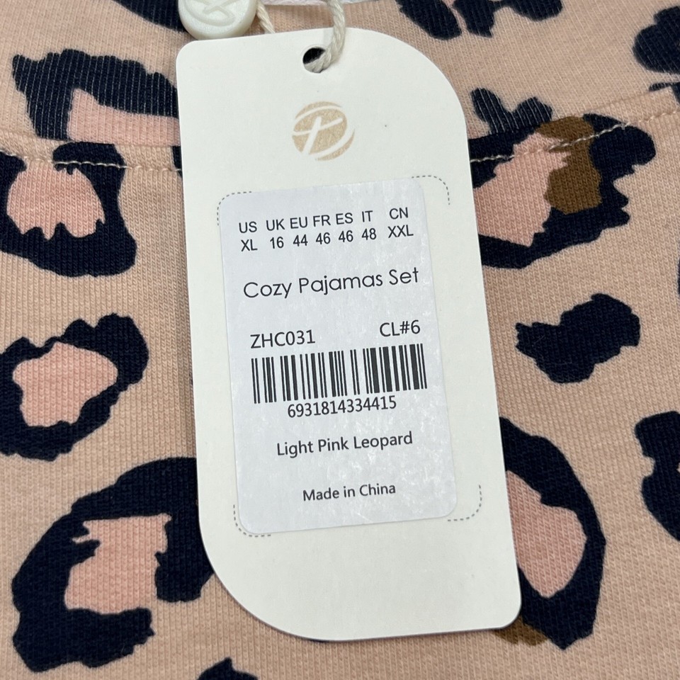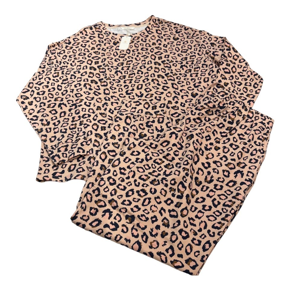 Dobreva Pajamas Set Womens XL Pink Leopard Animal Print Jogger Long Slv Top Cozy
