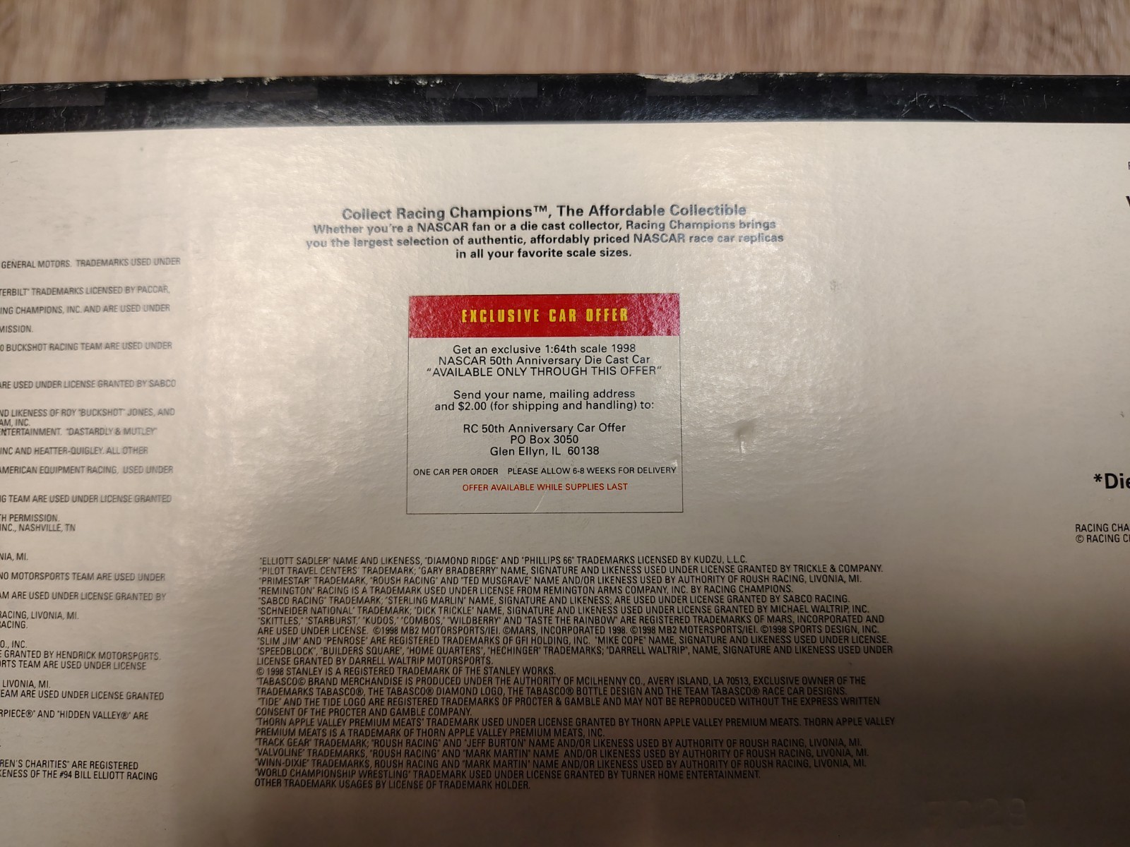 This limited-edition die-cast was issued by Racing Champions in 1998 to celebrate NASCAR?s 50th Anniversary.