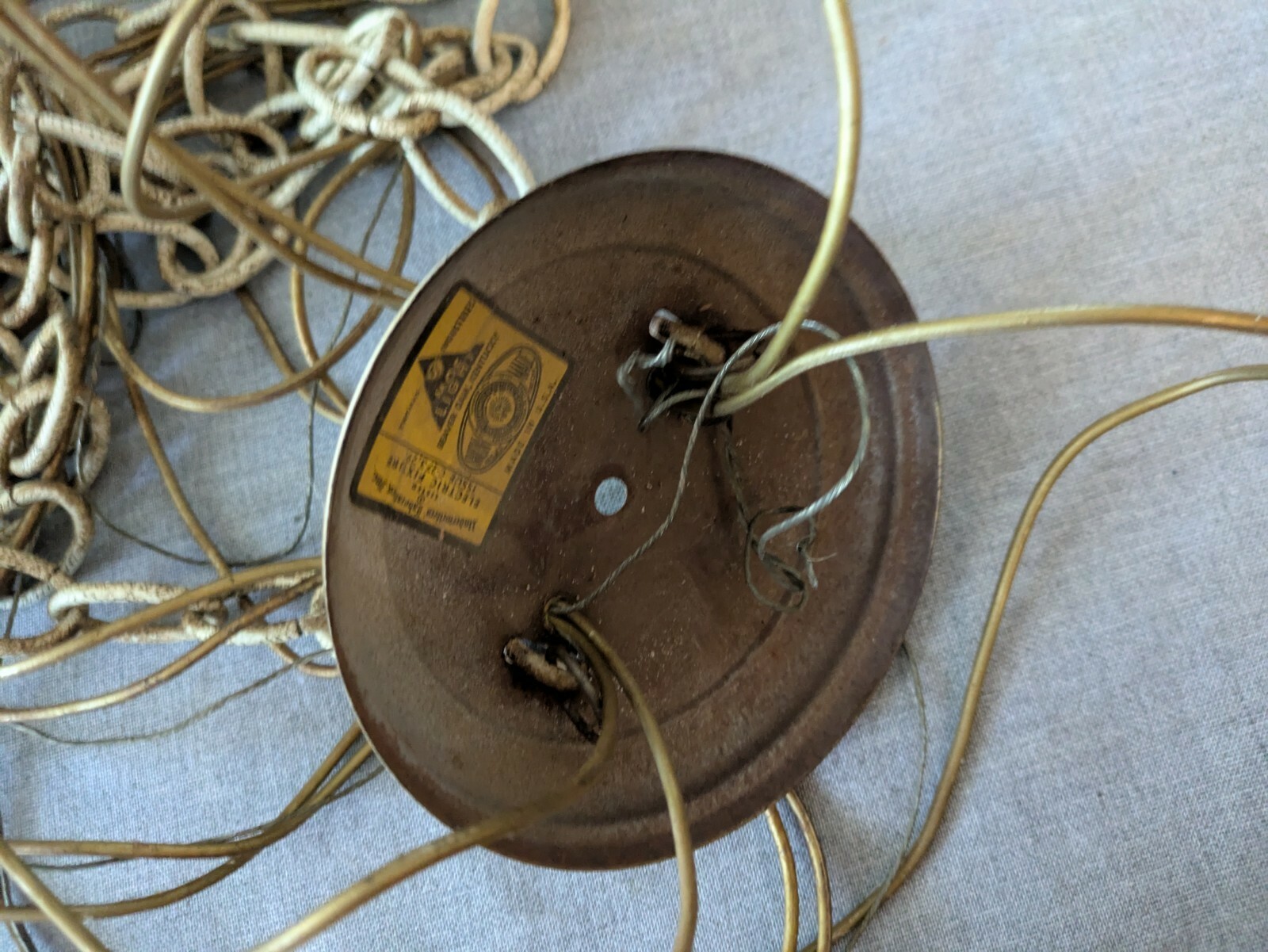 1La lampe suspendue a la larme de larme a la larme a la larme a la larme a la larme MCM White est une piece vintage de l'ere des annees 1960. Cette lampe originale cablee comporte une teinte en verre blanche avec une finition mate et un cordon en or. Parfait pour toutes les occasions, cette lampe suspendue interieure ajoute une touche de charme retro a n'importe quel espace. Fabrique aux Etats-Unis, cette lampe de butin est un ajout unique et elegant a toute collection de luminaires de collection.